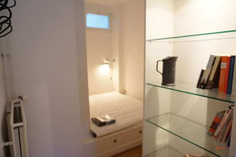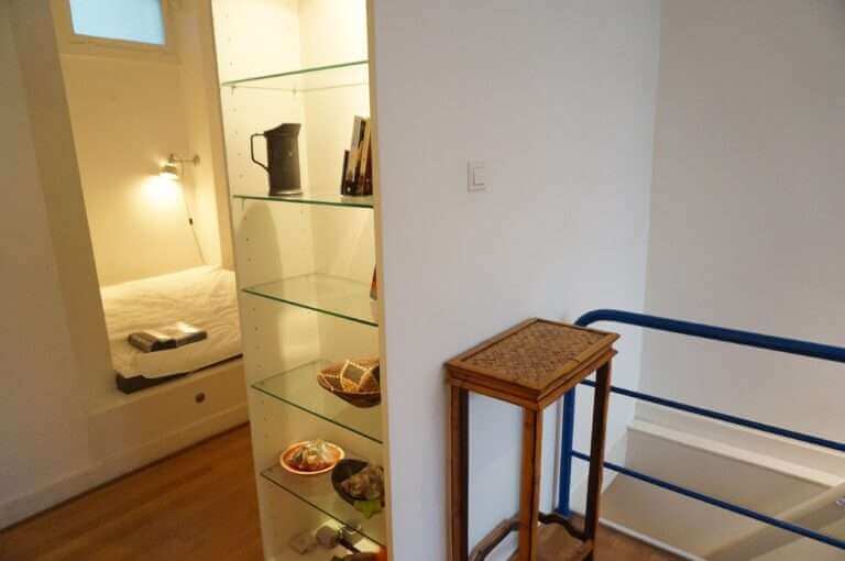 De woonkamer en slaapkamer en-suite bevinden zich in de beletage.