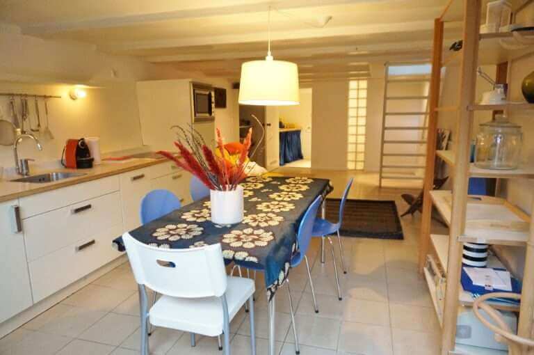 Via een interne trap naar beneden bereikt u het souterrain, hier bevinden zich de woonkeuken en de badkamer.