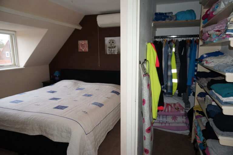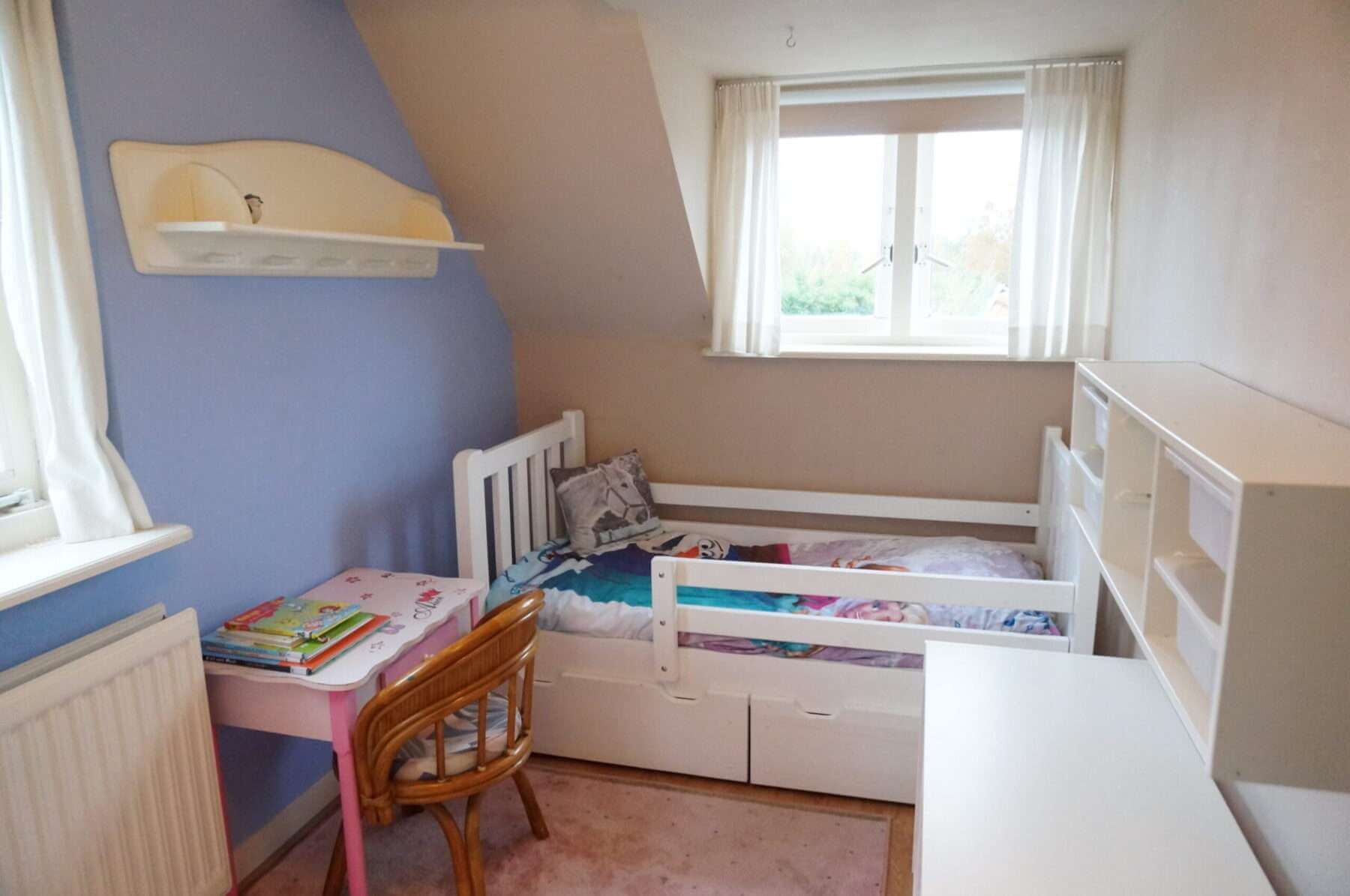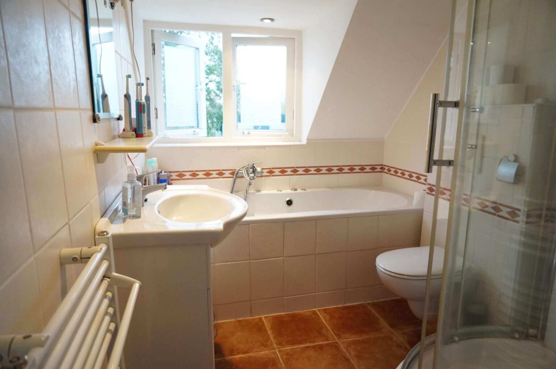 Overloop, badkamer met bubbelbad, douchestoomcabine, en toilet. Drie slaapkamers met inbouwkasten, waarvan de ouderslaapkamer een inloopkast heeft.