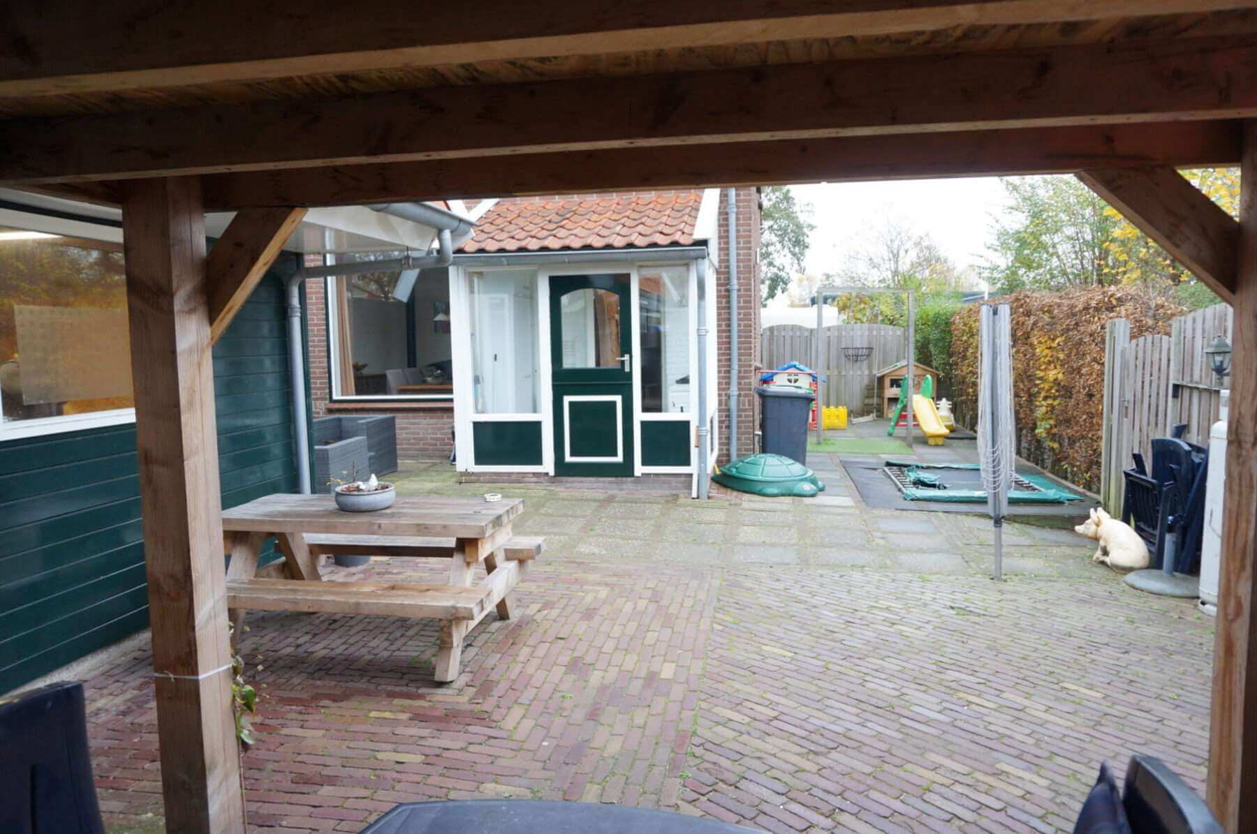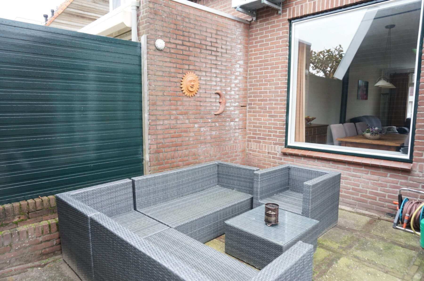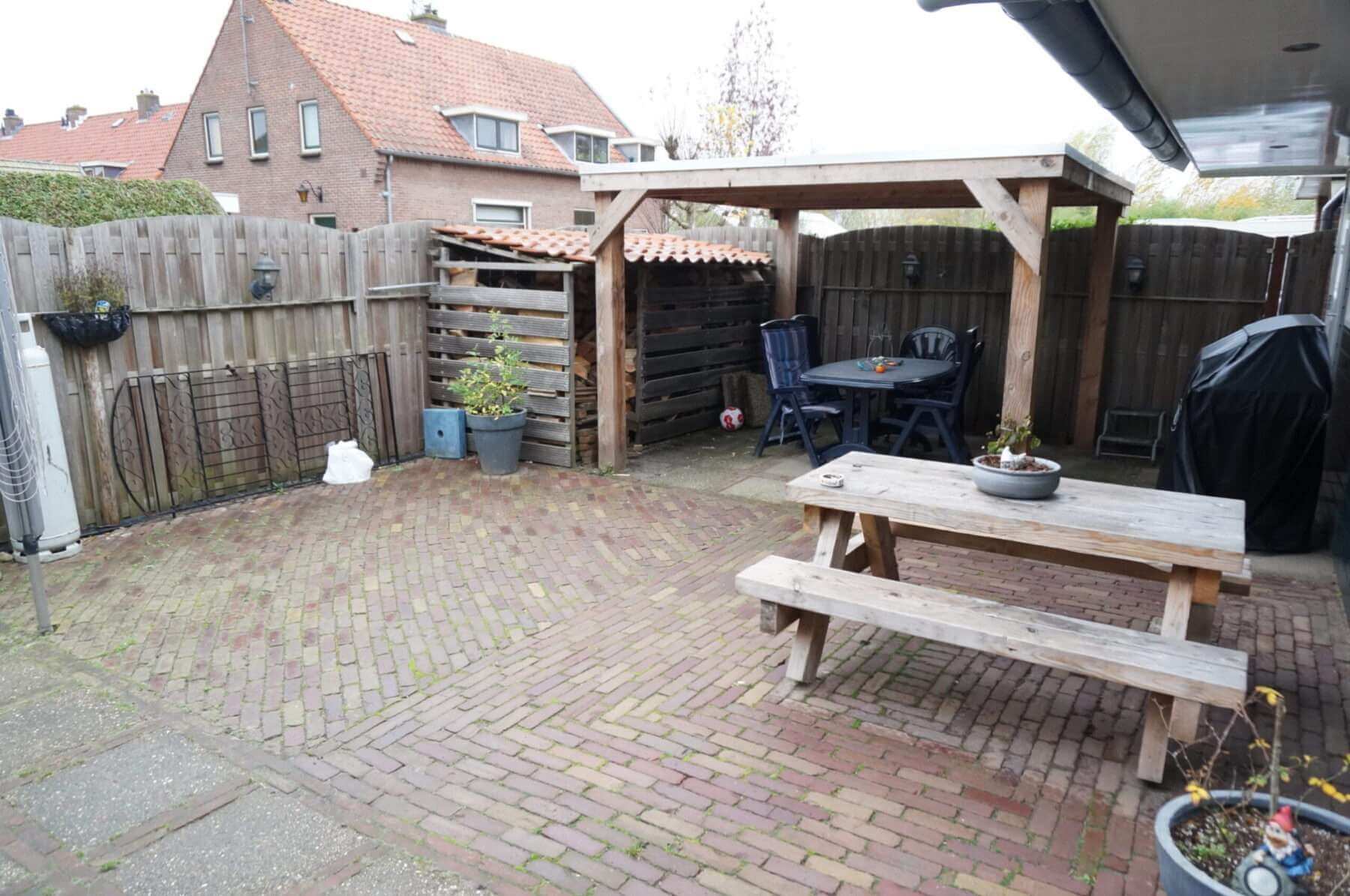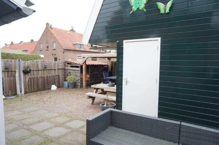 De diepe achtertuin is voorzien van een terras, een veranda een zeer ruime berging. De bergvliering is middels een vaste trap te bereiken.