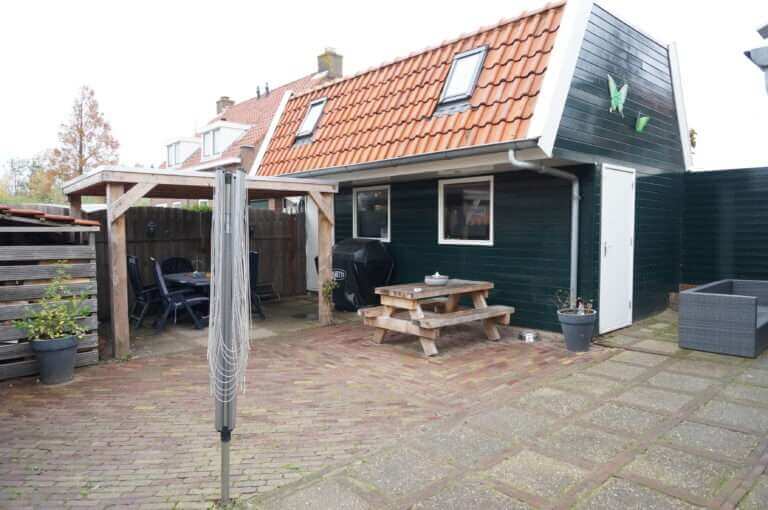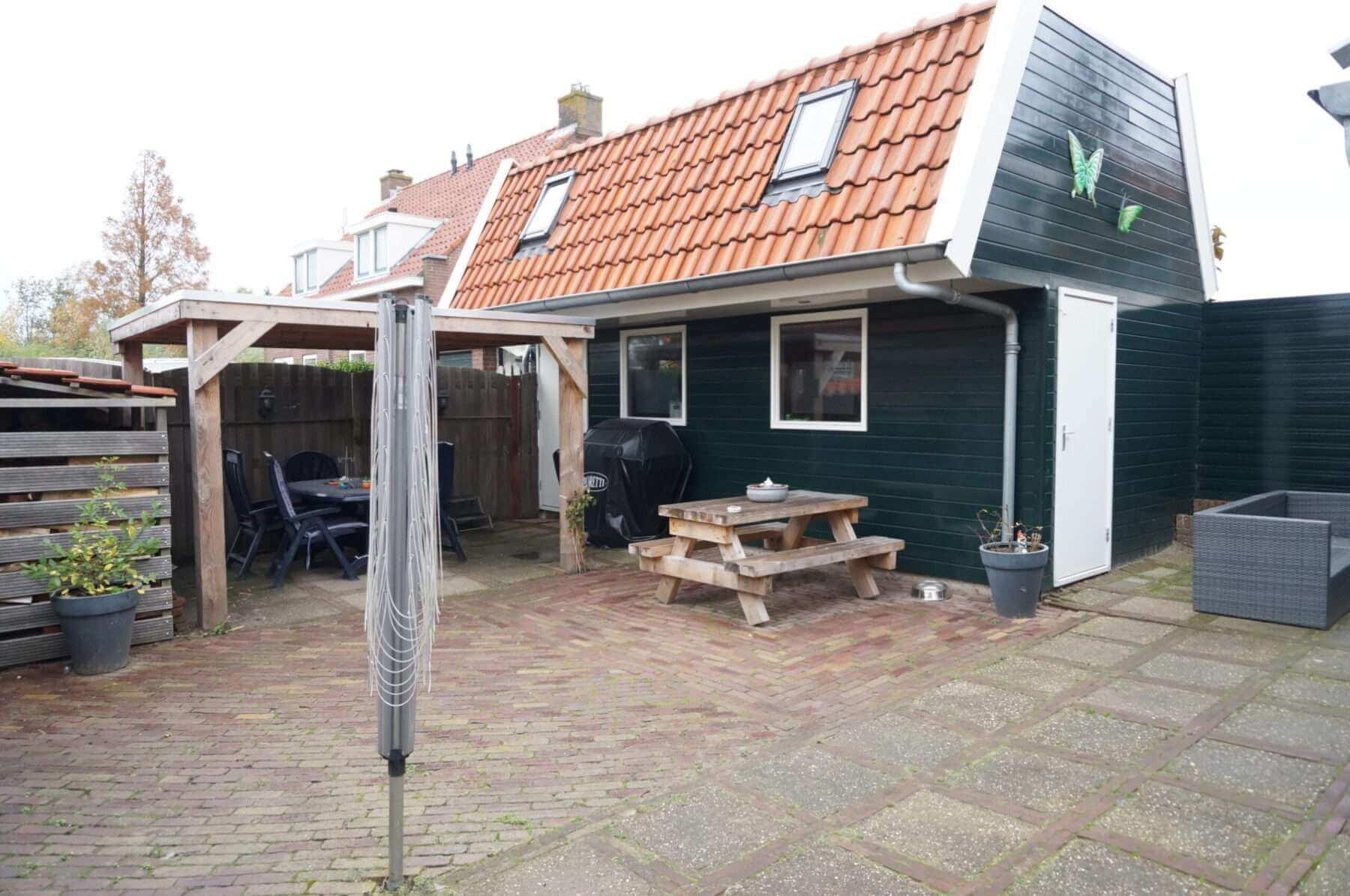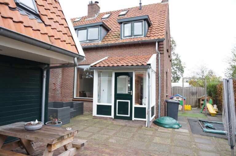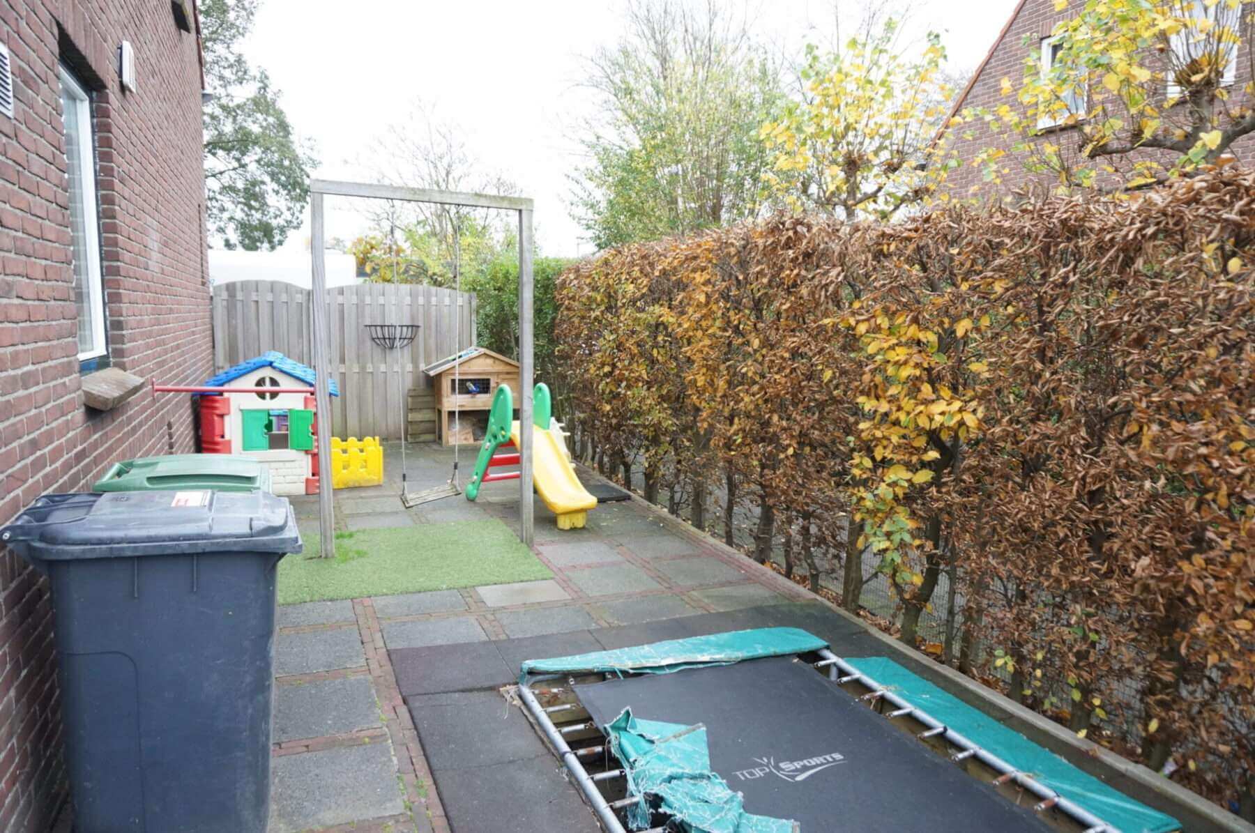 De diepe achtertuin is voorzien van een terras, een veranda een zeer ruime berging. De bergvliering is middels een vaste trap te bereiken.