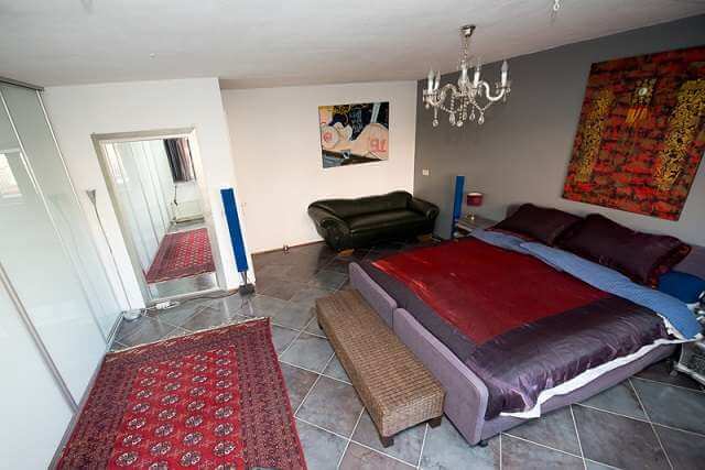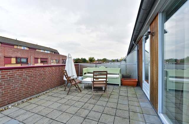 Ruime slaapkamer (mogelijkheid voor 2 kamers) met toegang tot het dakterras en uitzicht over het vaarwater. Vanuit de slaapkamer toegang tot het tweede dakterras.