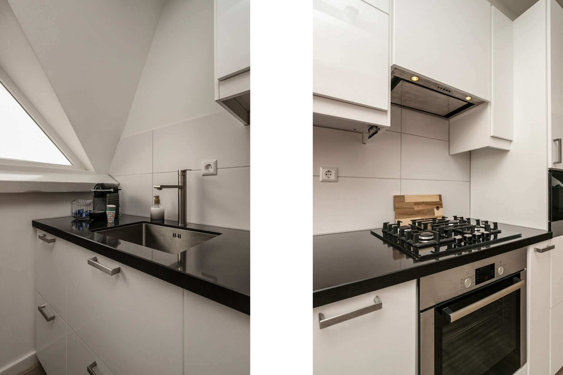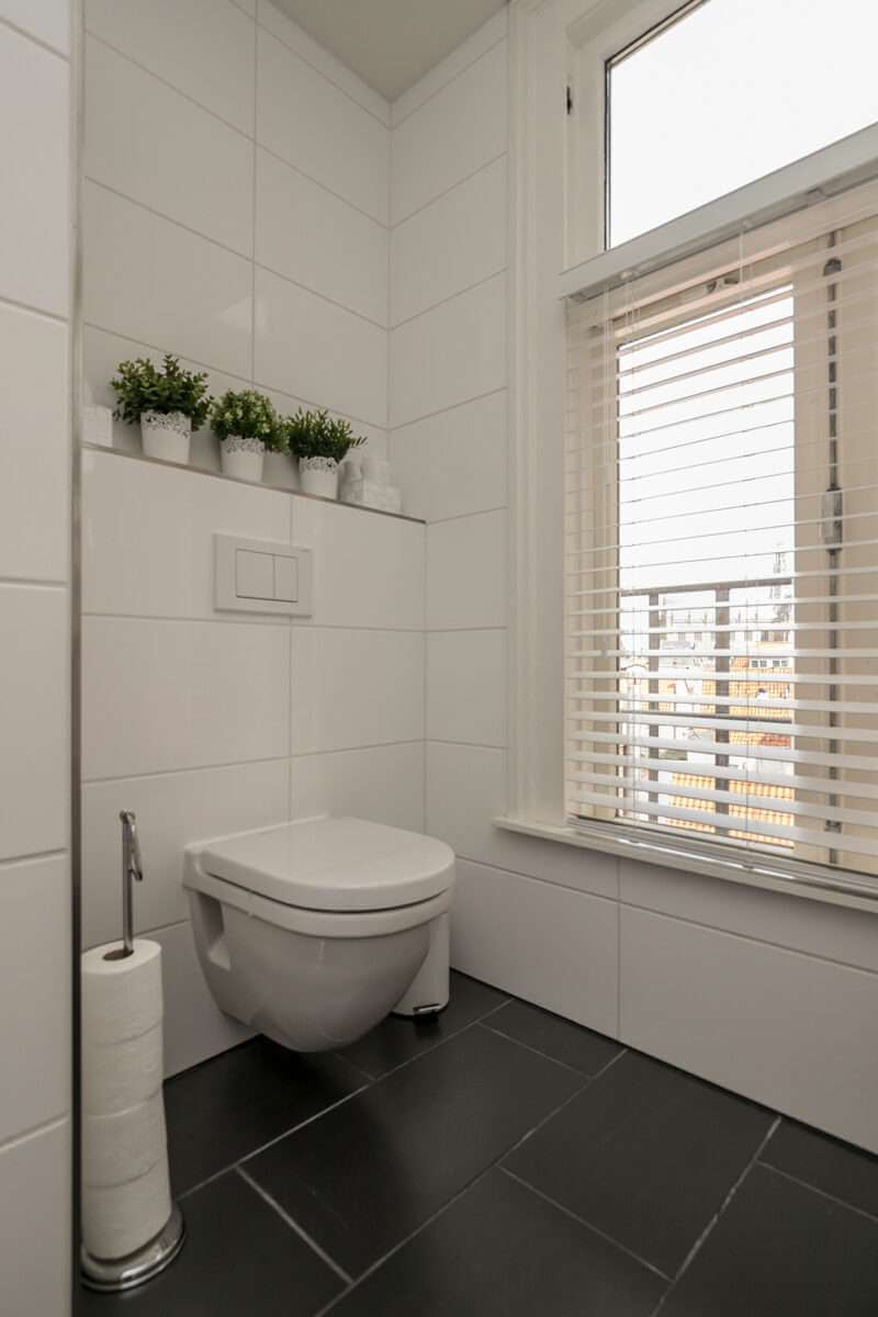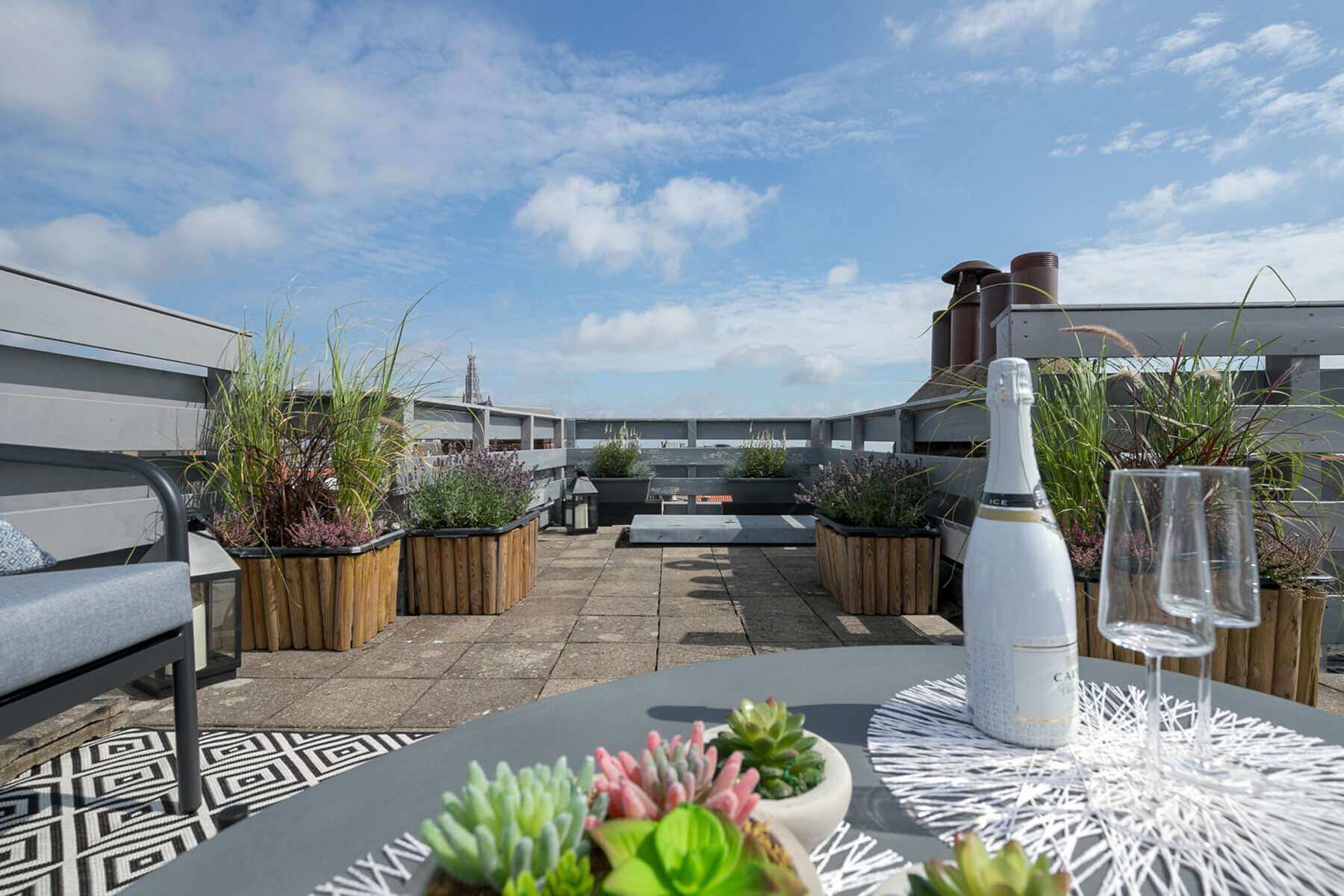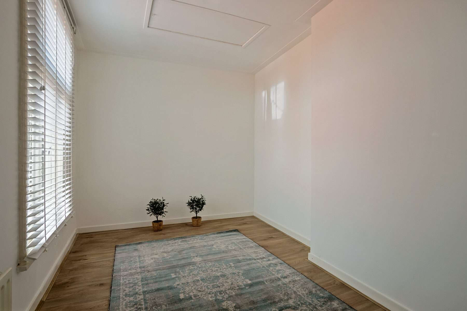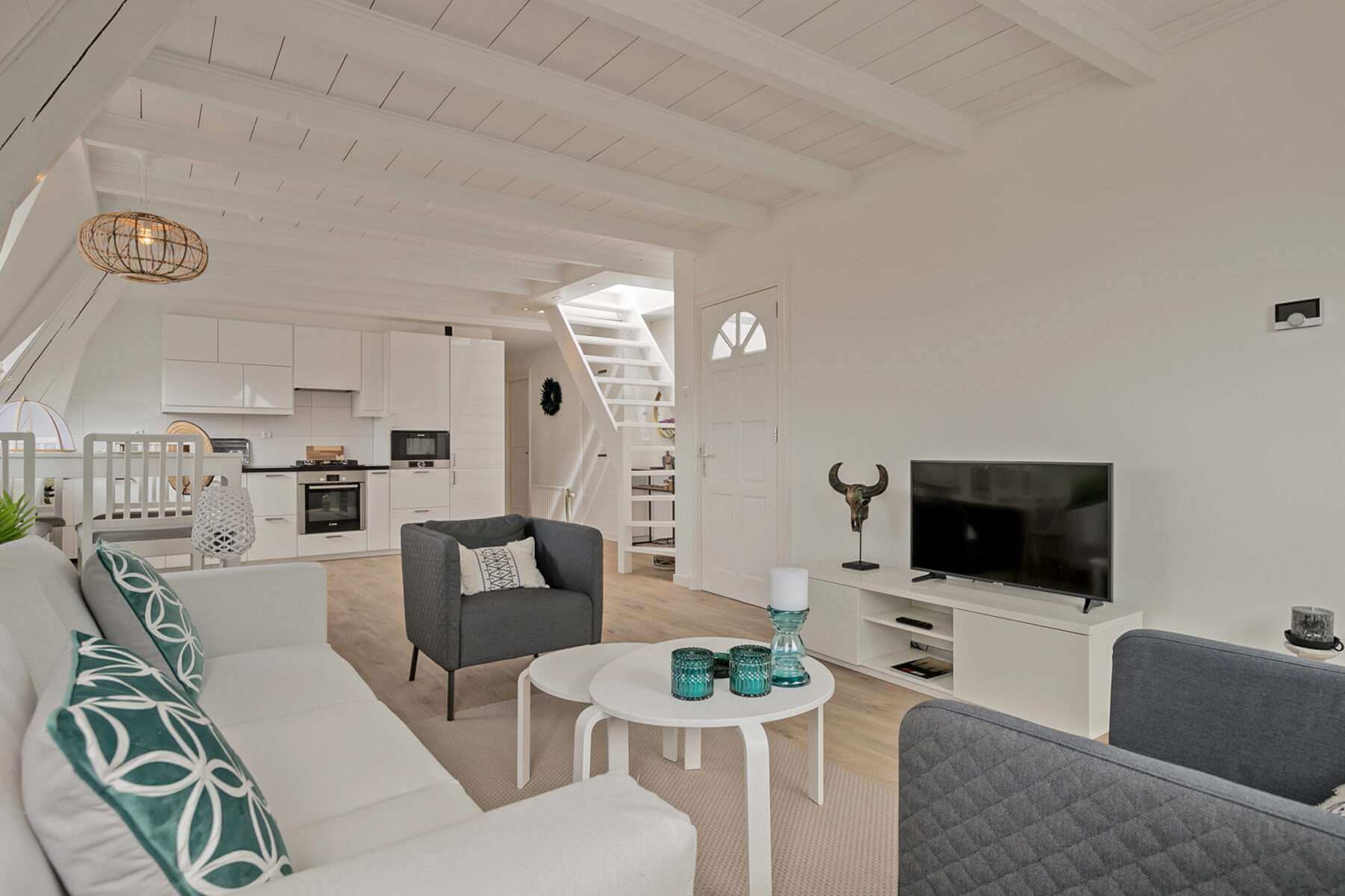 Het hoekhuis ligt op de 3e verdieping en heeft veel licht door de vele ramen. In de woonkamer leidt een trap naar het ruime dakterras.