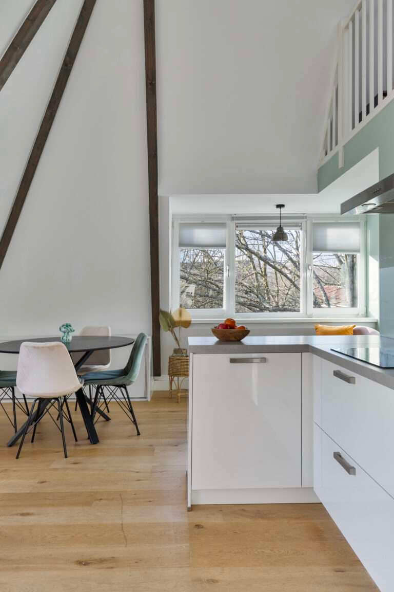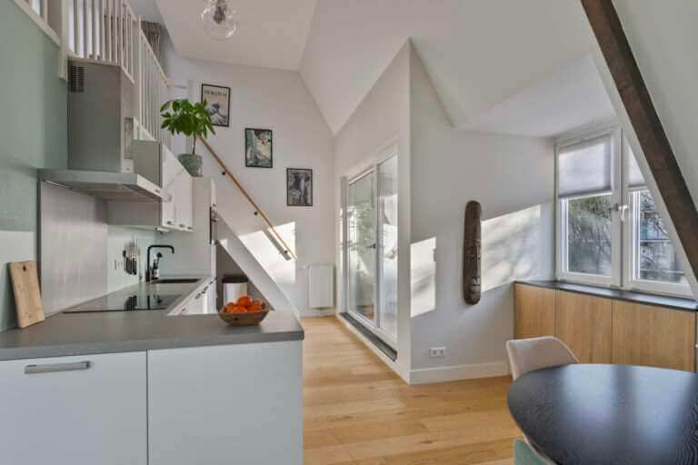 – 2e verdieping: keuken, balkon, 2 slaapkamers, washok, badkamer