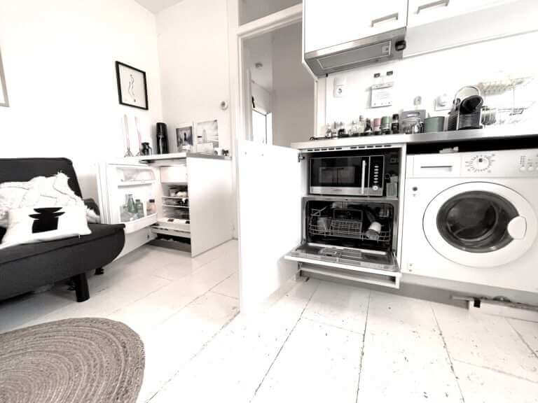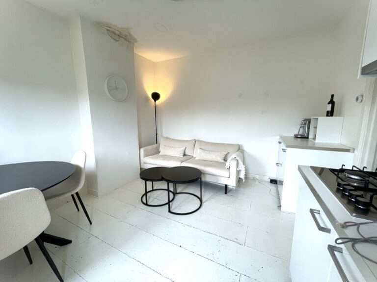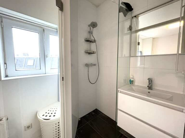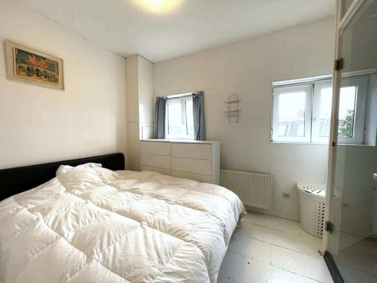Kleine (28m2) gemeubileerde studio met aparte slaapkamer met douche, gelegen op de bovenste (4e) verdieping.