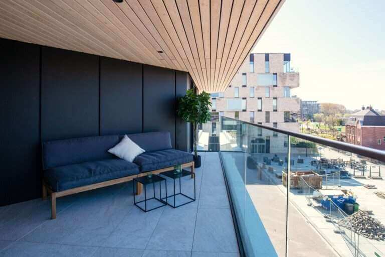 Fantastisch buiten terras van 17m2 op het Zuid-Westen gelegen met zicht op prachtige zonsondergangen.