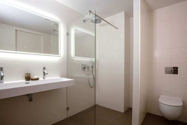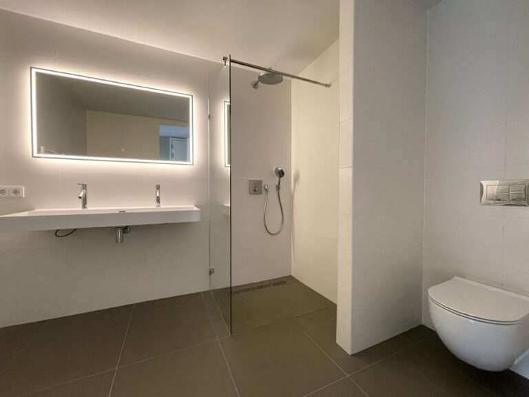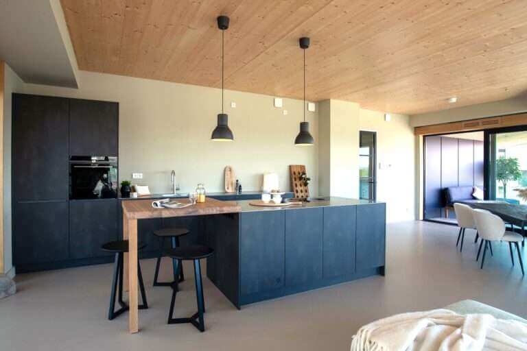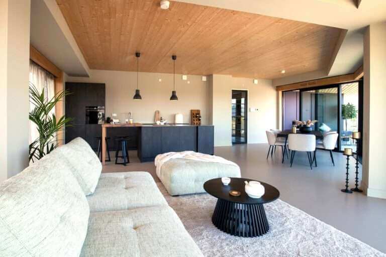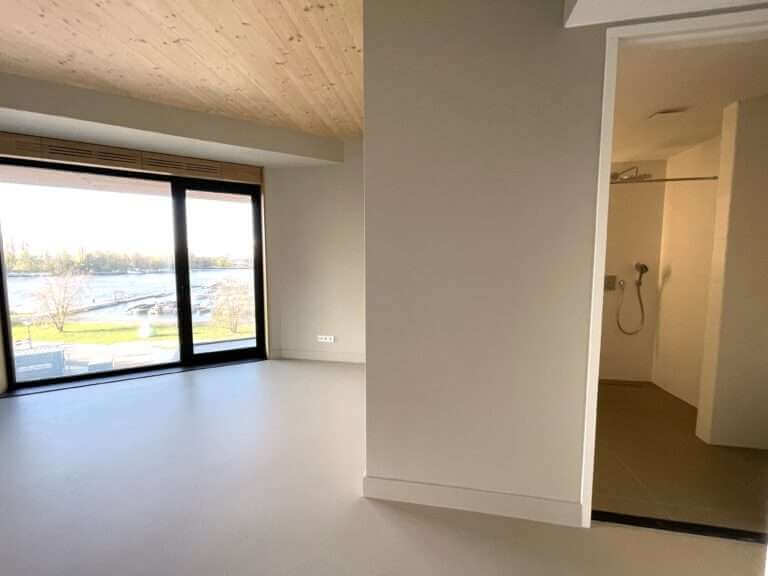 De prachtige gietvloer met luxe en comfortabele vloerverwarming en vloerkoeling is per kamer instelbaar.