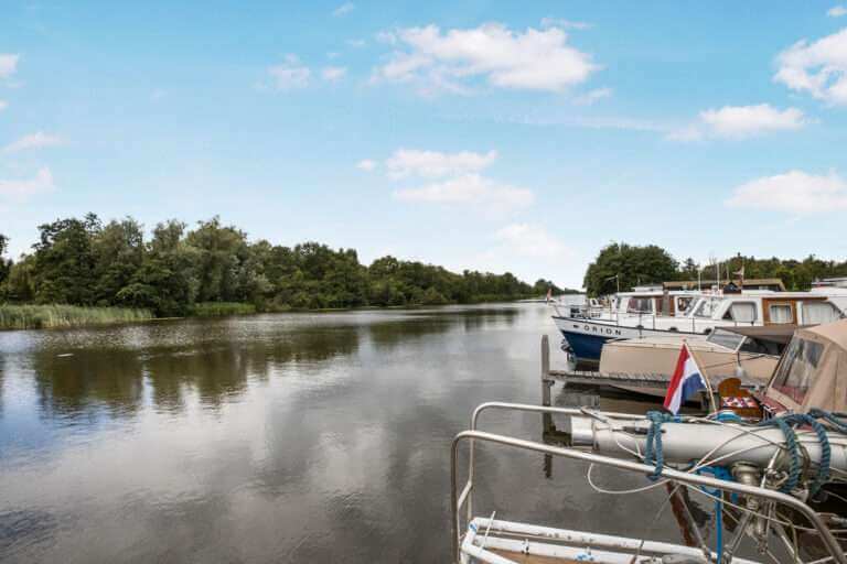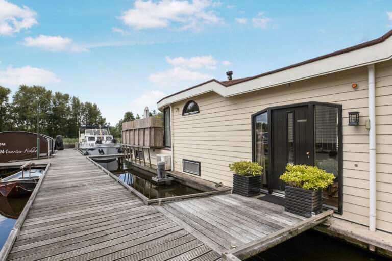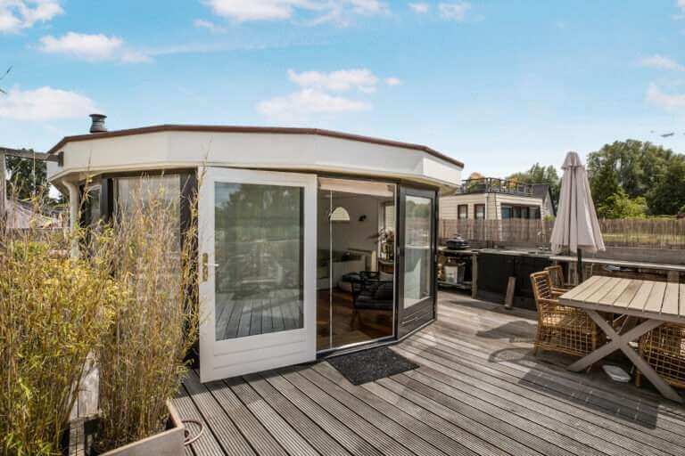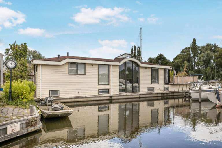 Het grootste model woonark, gelegen in de Watertuin van Amsterdam, aan de doorvaart naar de Loosdrechtse Plassen, de Wijde Blick en de historische rivier de Vecht.