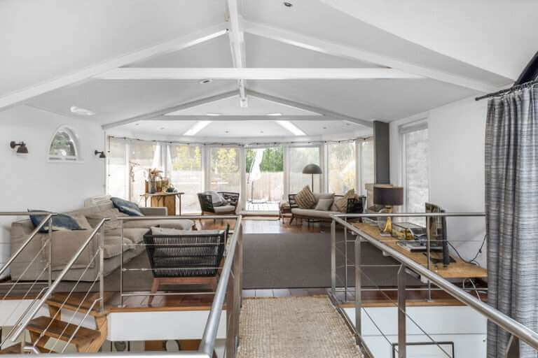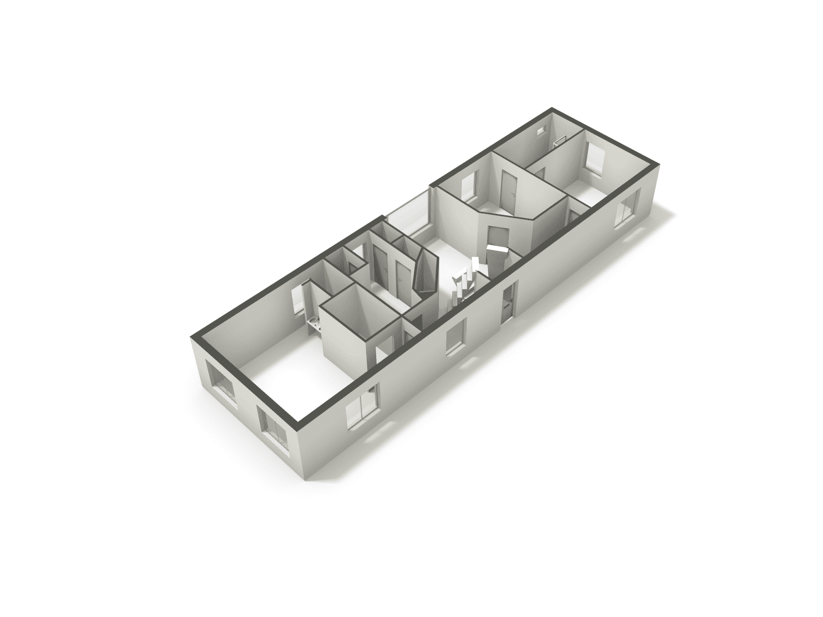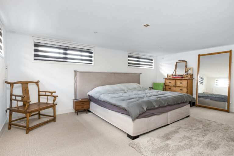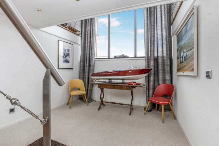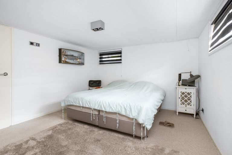 Beneden bevinden zich 4 slaapkamers, een apart toilet en een kantoorruimte.