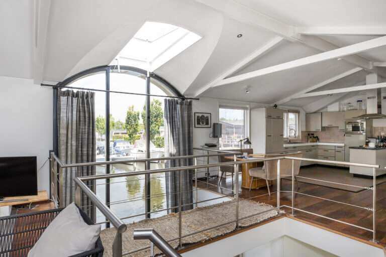 Luxe woonark met comfortabele airco en fabelachtig uitzicht over het water en de haven.