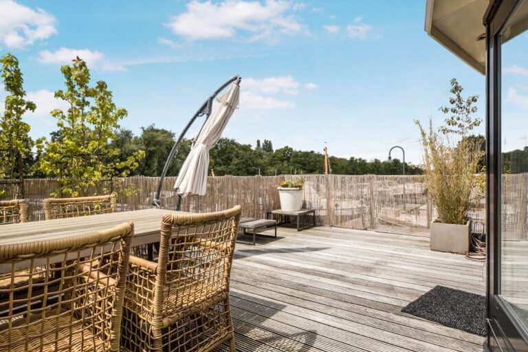 * ruim terras van circa 34m2 aan het water, op het zuiden
