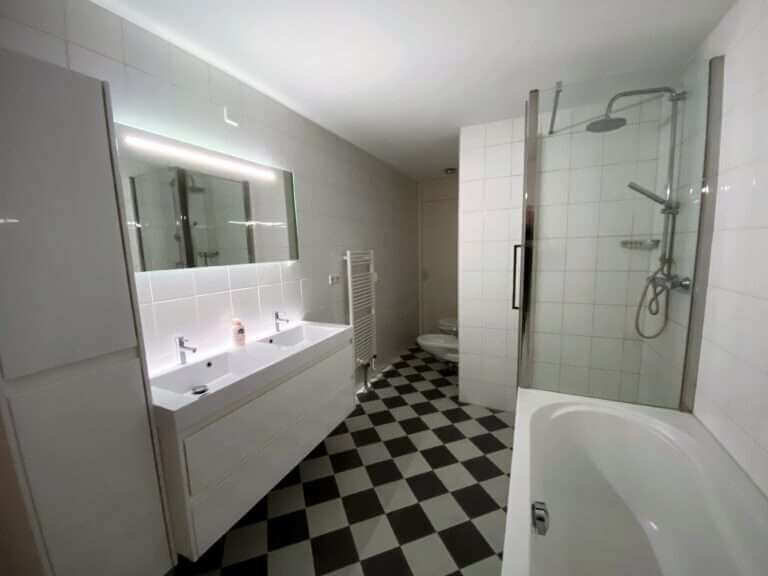 De master slaapkamer heeft de badkamer met douche, ligbad, bidet en toilet en suite. De woning biedt een aparte gastentoilet in de hal.