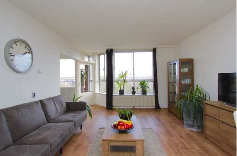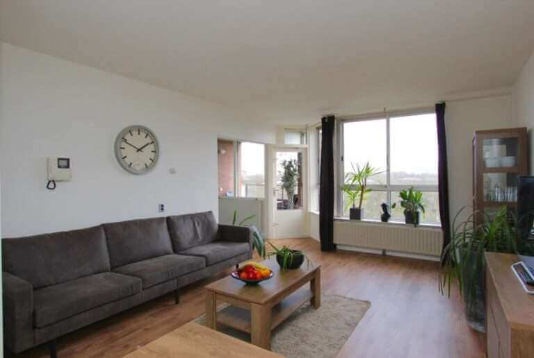 Gemeubileerd 3 kamer (2 slaapkamer) appartement op de 7e verdieping met panoramisch uitzicht over groen. Door de twee grote slaapkamers is deze woning zeer geschikt voor twee woningdelers.