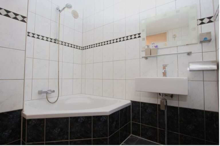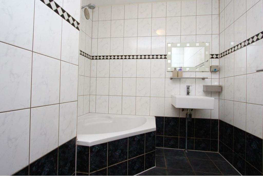 In de gang is er een aparte toilet. De badkamer is voorzien van een ligbad met douchegelegenheid, wastafelcombinatie en de opstelplaats voor de was-droogcombinatie.