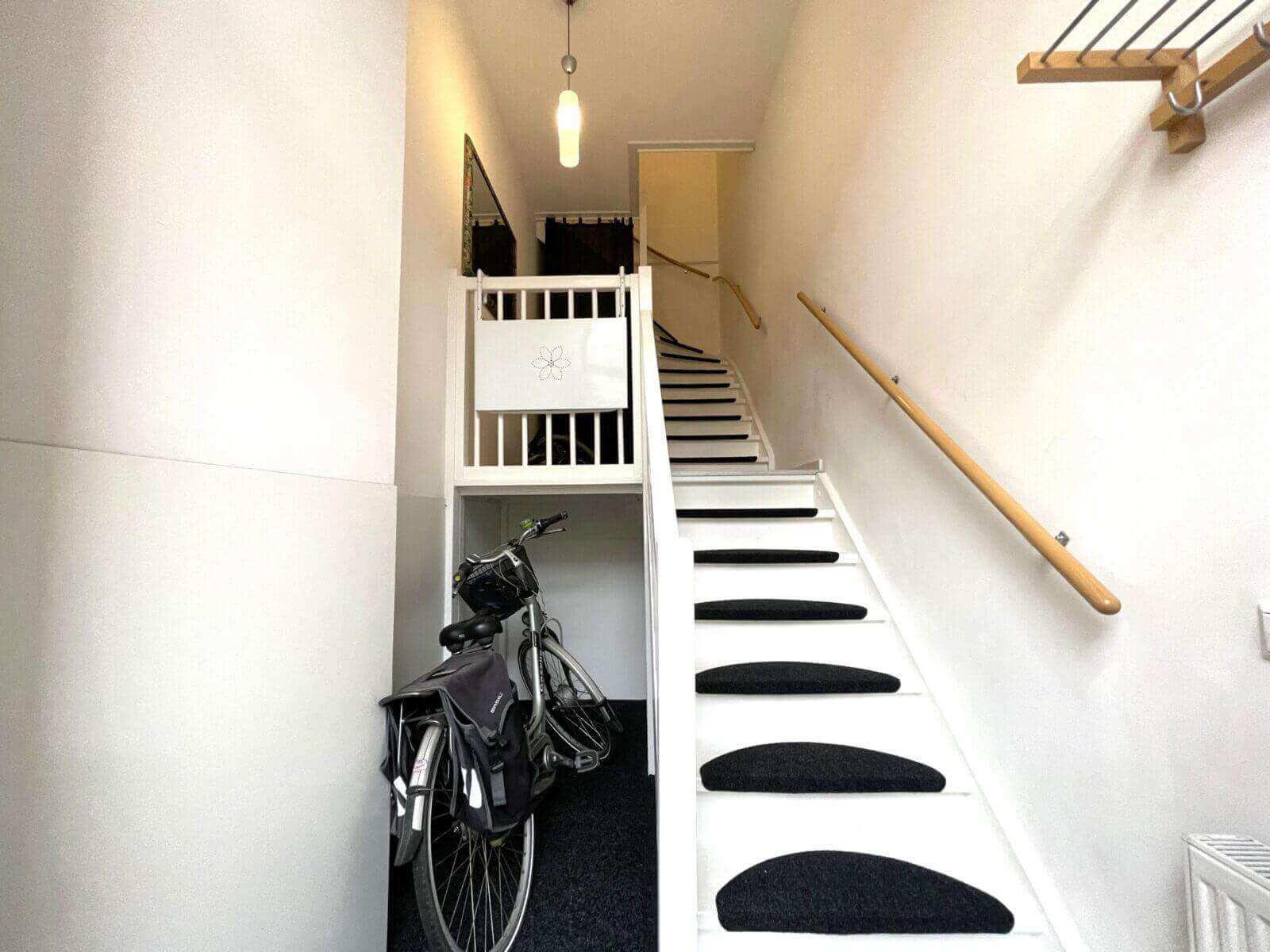 Voorzien van een inpandige fietsenstalling en privé parkeerplaats in de inpandige garage.