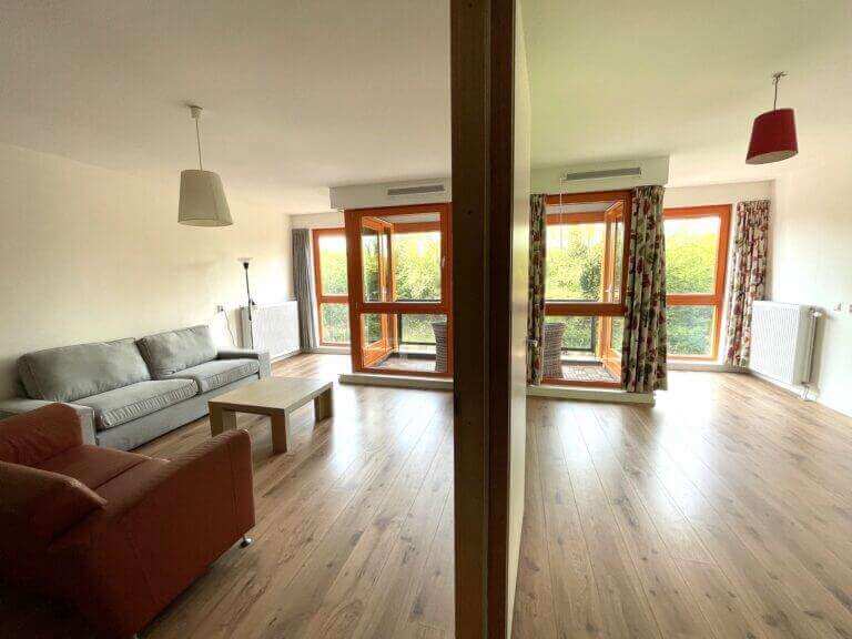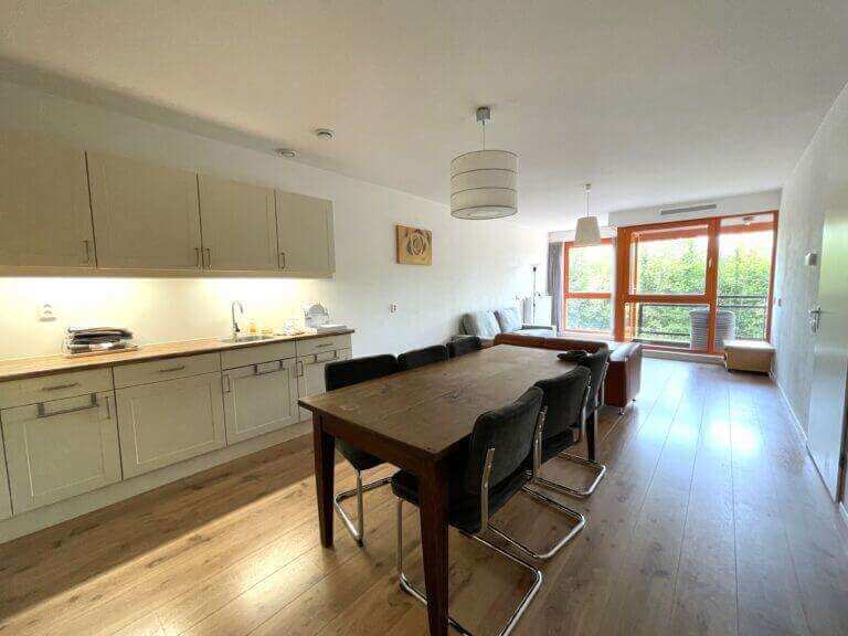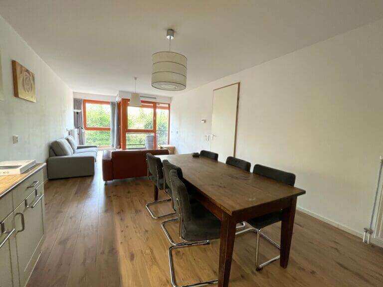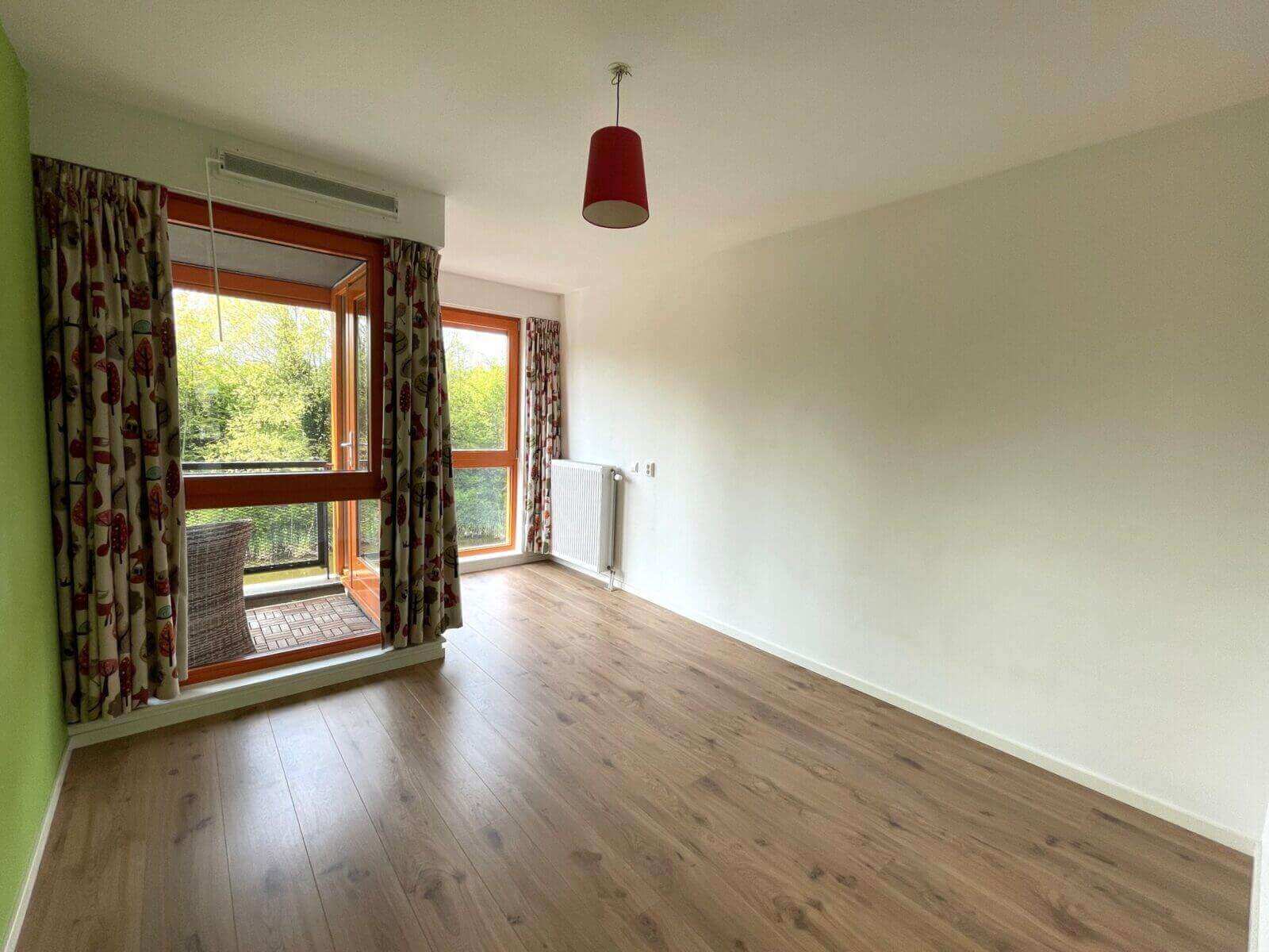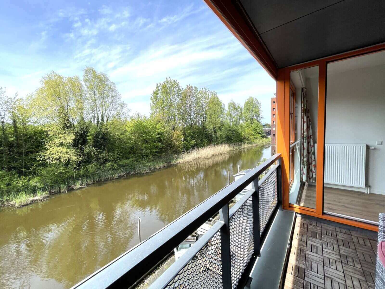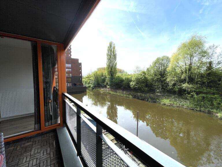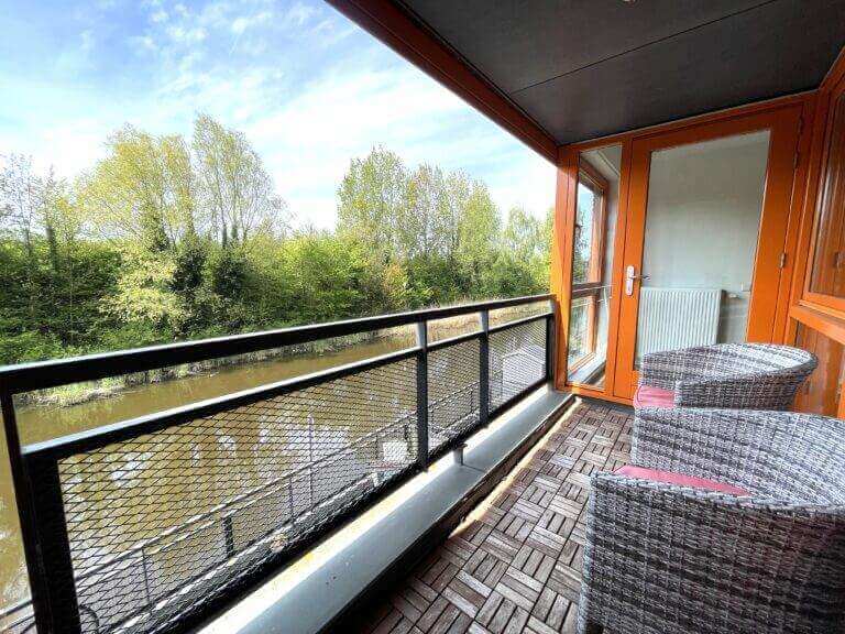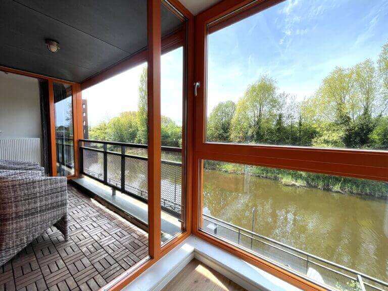 Via de woonkamer/dining, loopt u het balkon op met uitzicht over het water en groenpartijen.
