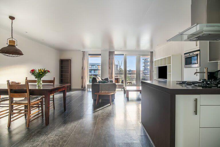 Het appartement is lekker licht door de hoge ramen. De moderne keuken is voorzien van diverse inbouwapparatuur. Vanaf het zonnige terras aan de achterzijde is er vrij uitzicht over de binnentuin.