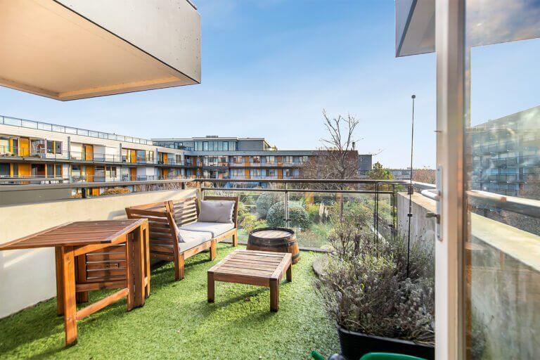 – Zonneterras aan de achterzijde met uitzicht over fraai aangelegde gemeenschappelijk binnentuin;