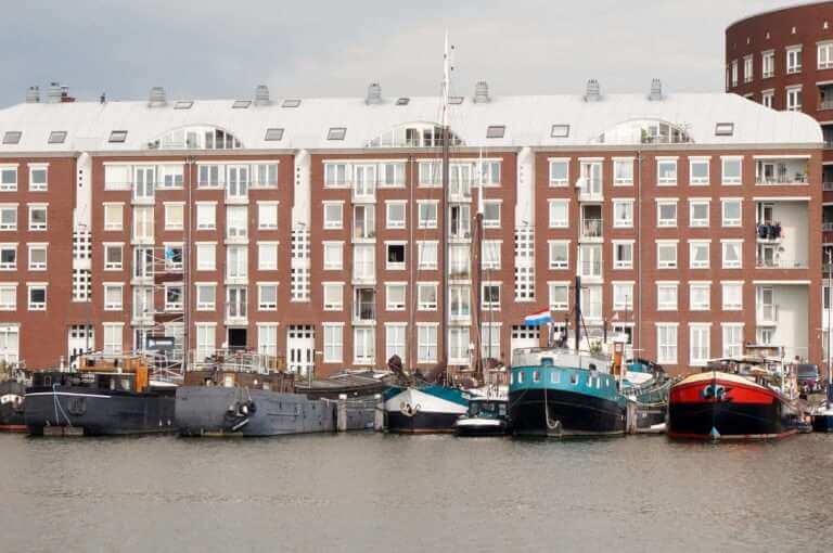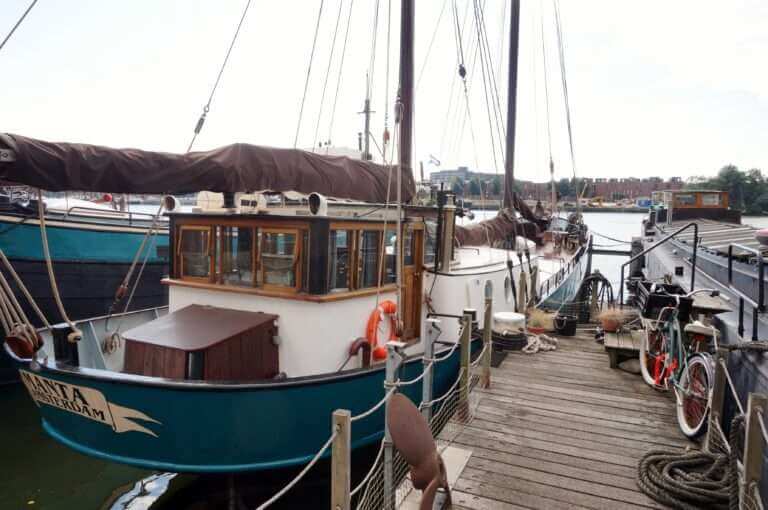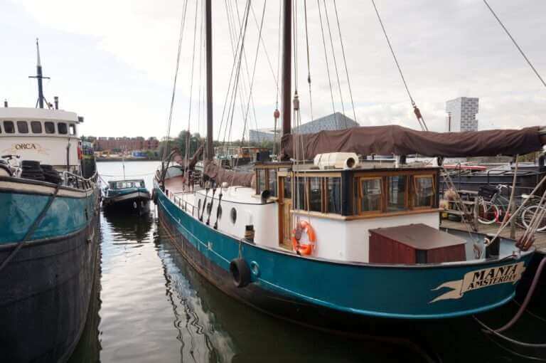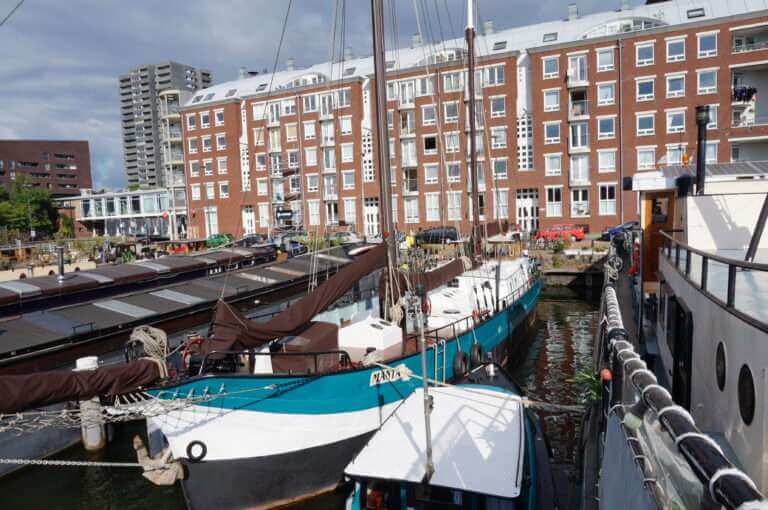 Het schip is afgemeerd aan het KNMS Eiland in een waterrijke omgeving met een stedelijk karakter. De wijk is kindvriendelijk en met veel groen ingericht.