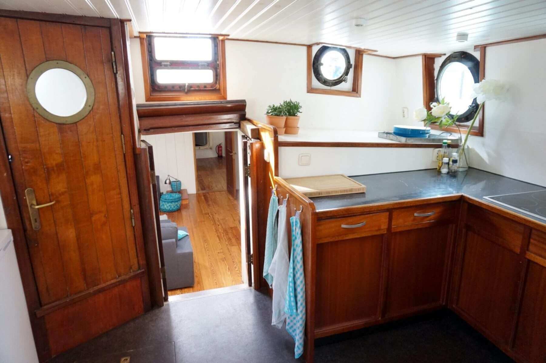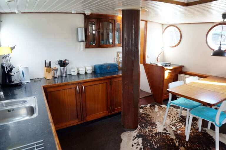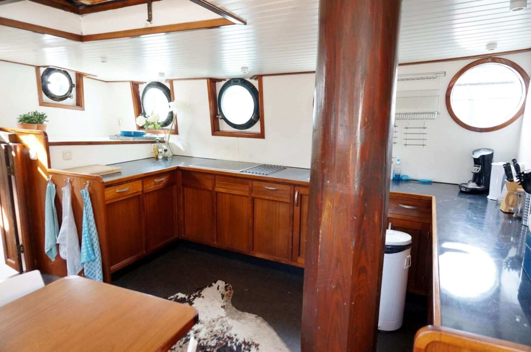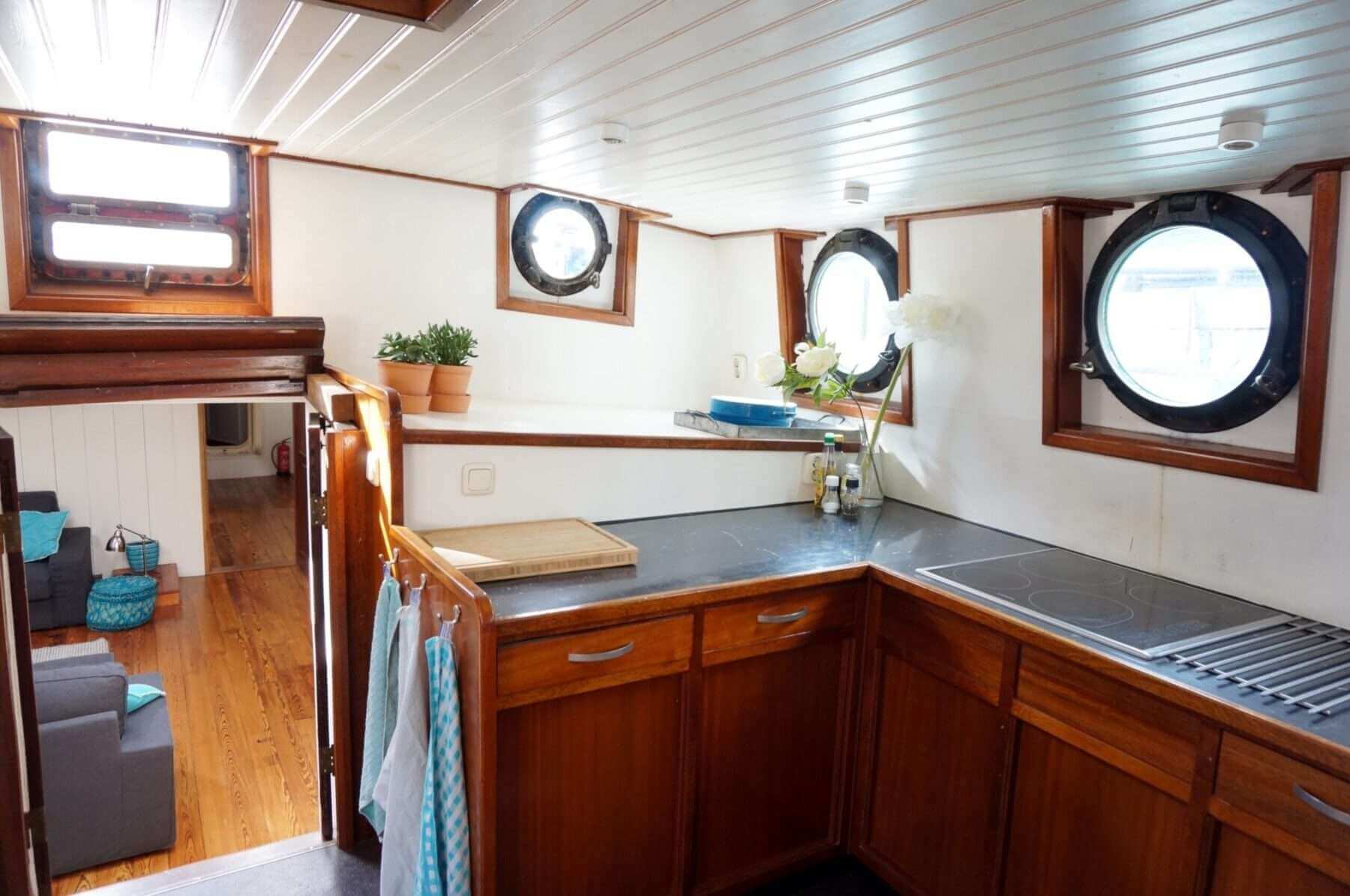 De atmosfeer in het schip is traditioneel en modern tegelijkertijd. De woning biedt alle comfort van een modern huis, 2 slaapkamers, moderne woonkeuken, ruime woonkamer en de stuurhut kan gebruikt worden als eet/koffie/borrel kamer voor 8 personen, met fabelachtig uitzicht over het water.