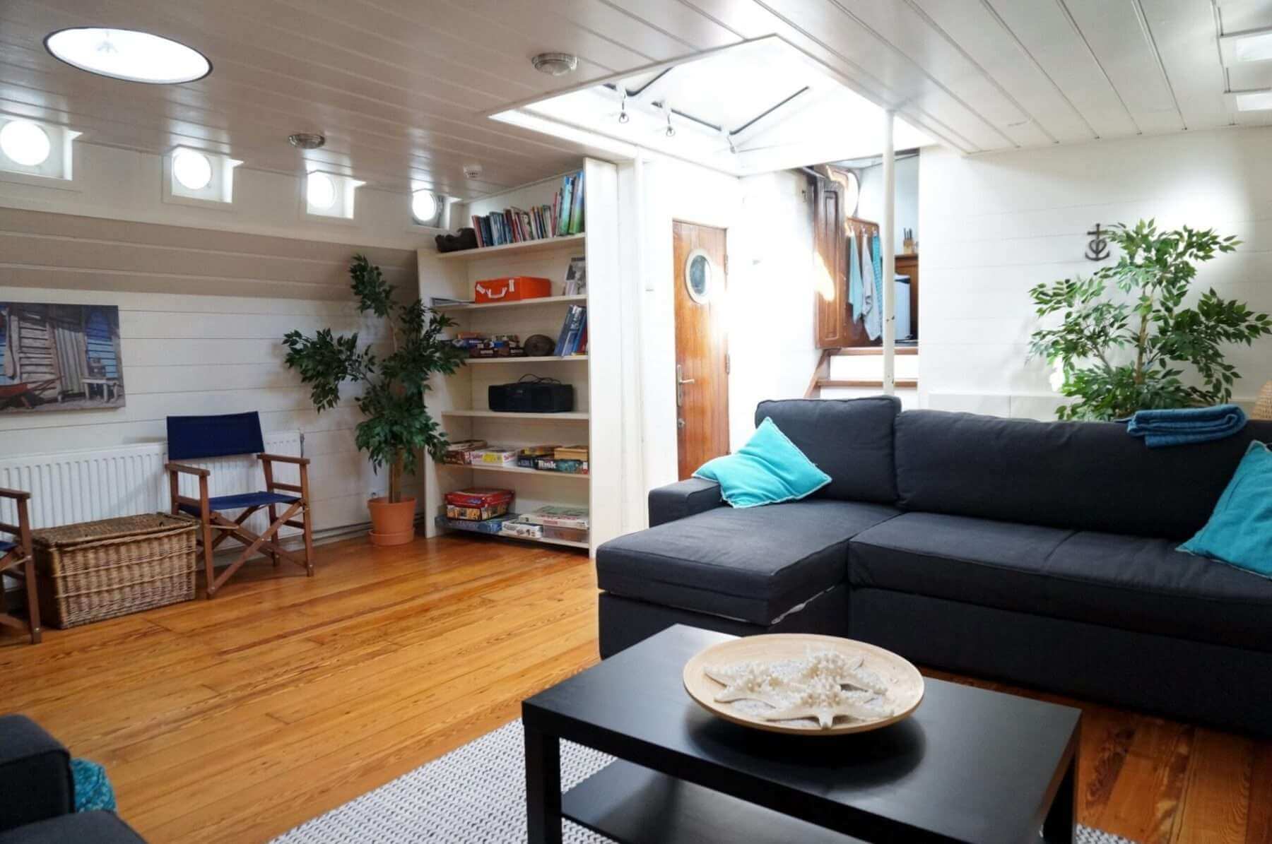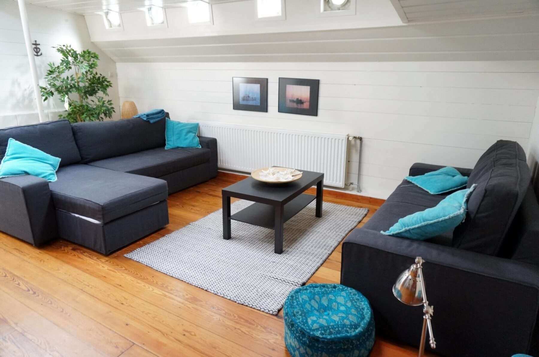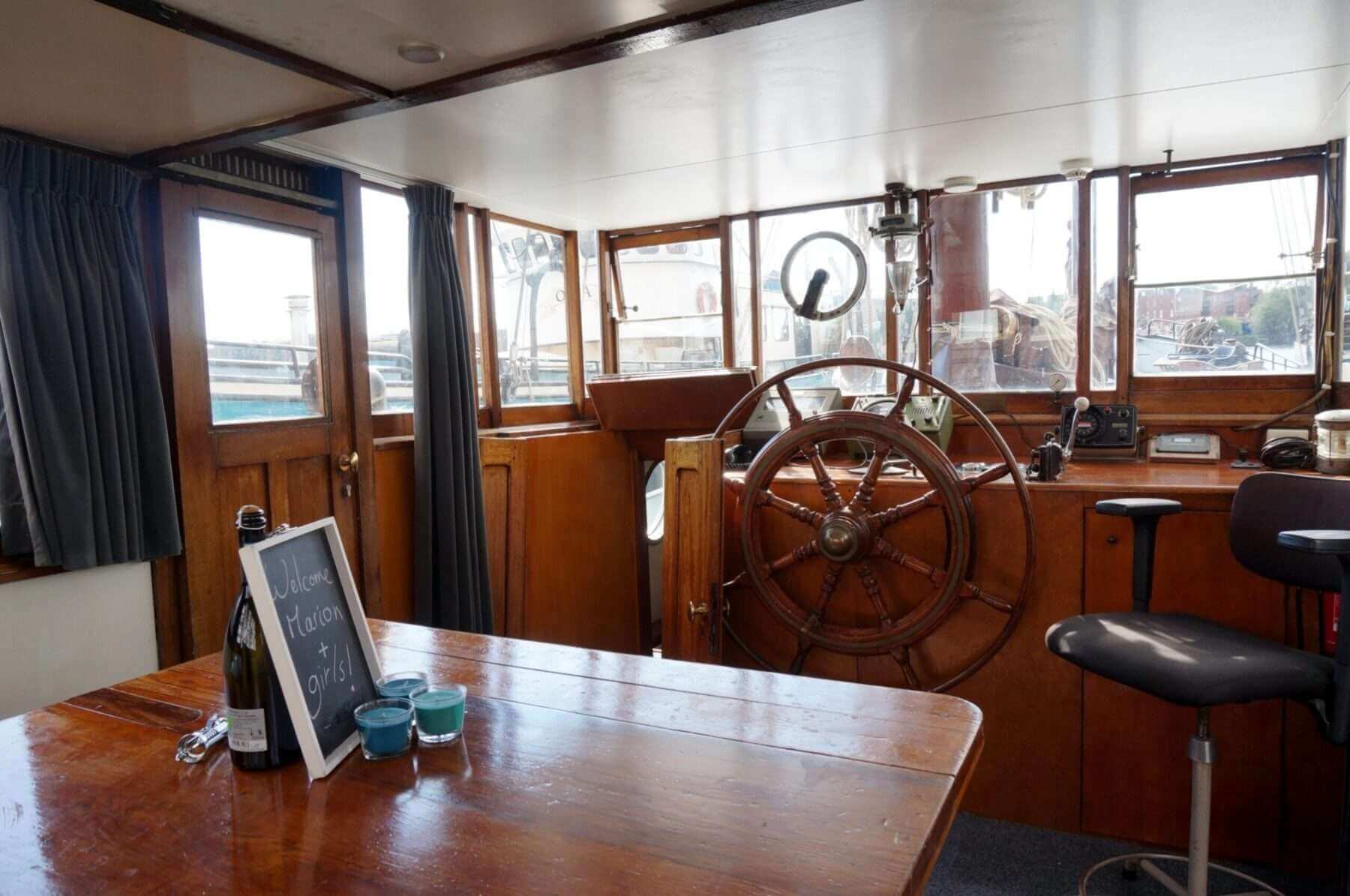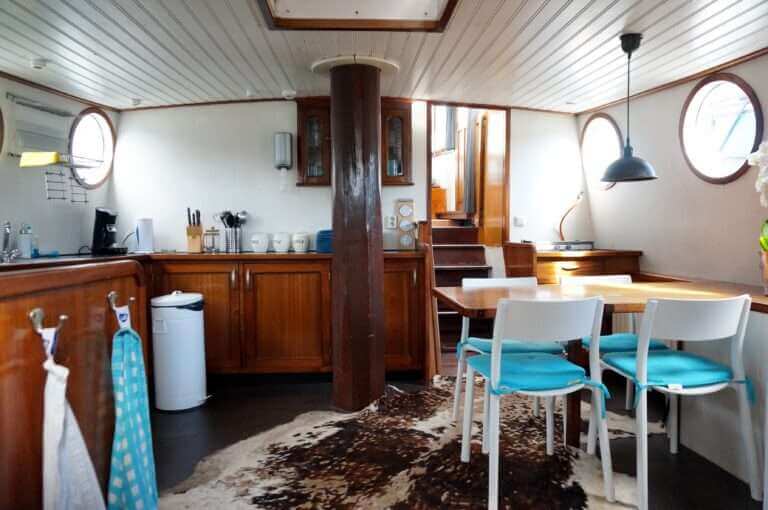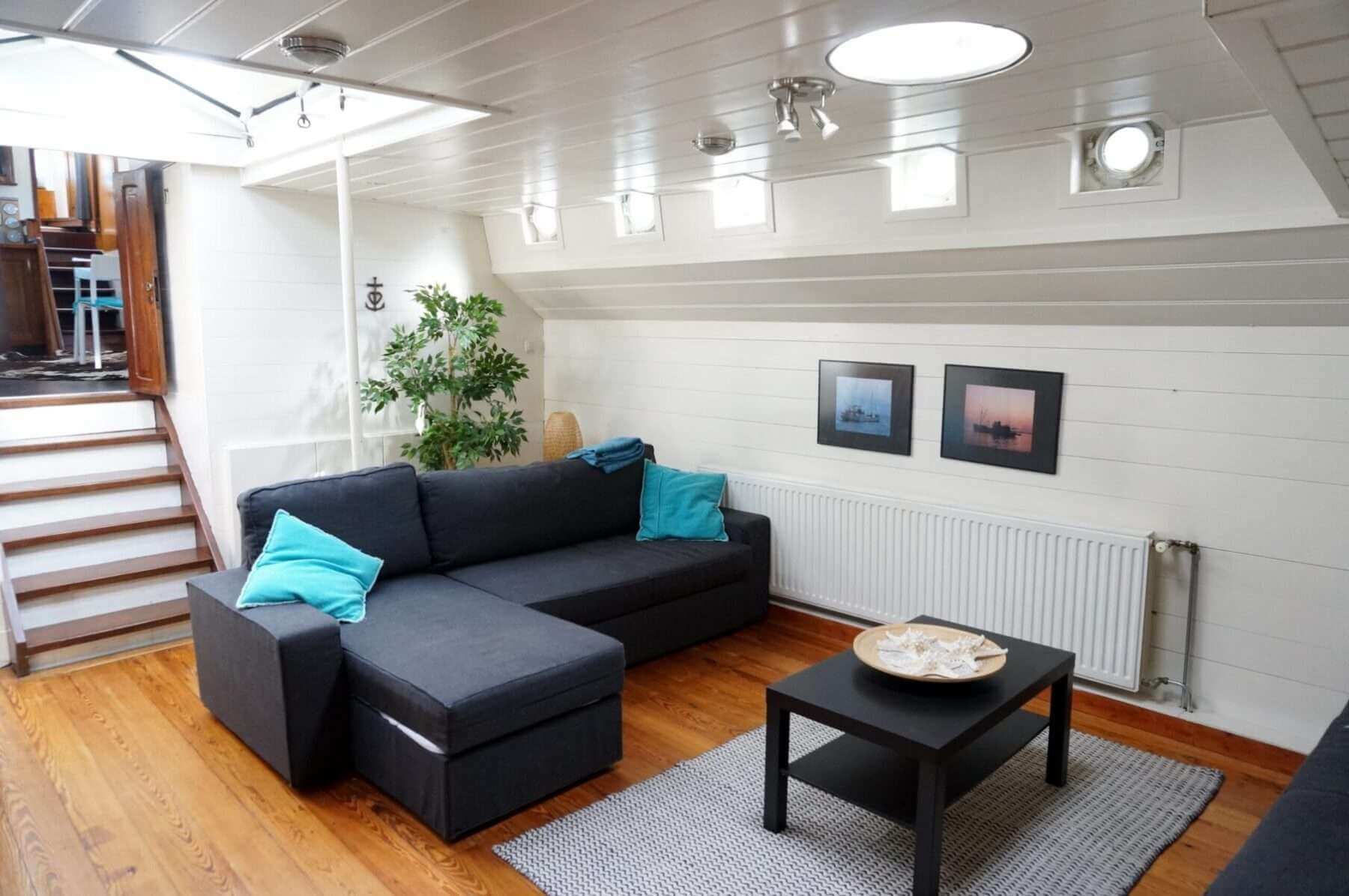 De atmosfeer in het schip is traditioneel en modern tegelijkertijd. De woning biedt alle comfort van een modern huis, 2 slaapkamers, moderne woonkeuken, ruime woonkamer en de stuurhut kan gebruikt worden als eet/koffie/borrel kamer voor 8 personen, met fabelachtig uitzicht over het water.