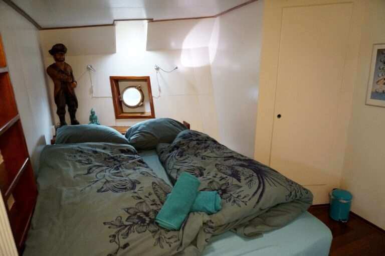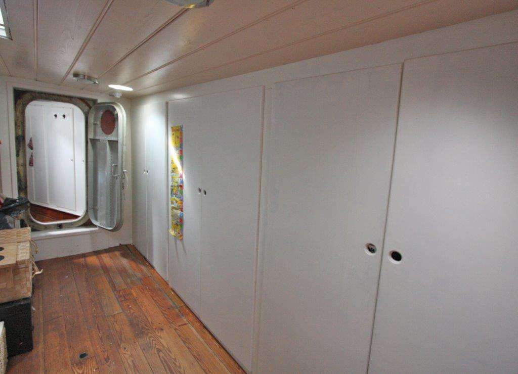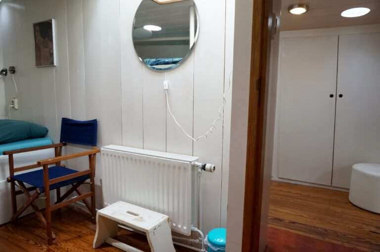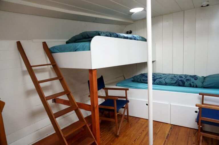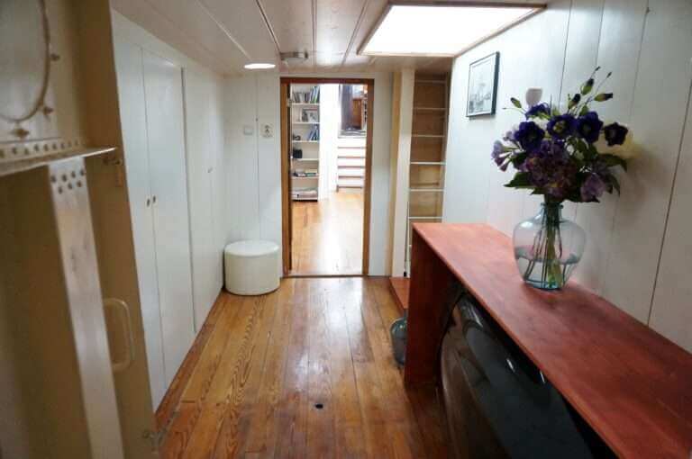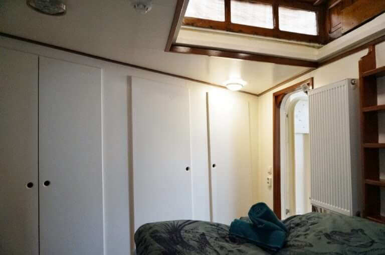 – Verder naar de voorkant van het schip is er een hal die leidt naar twee slaapkamers, één met een tweepersoonsbed en één met twee eenpersoonsbedden. In dit gedeelte zijn er vele inbouwkasten.