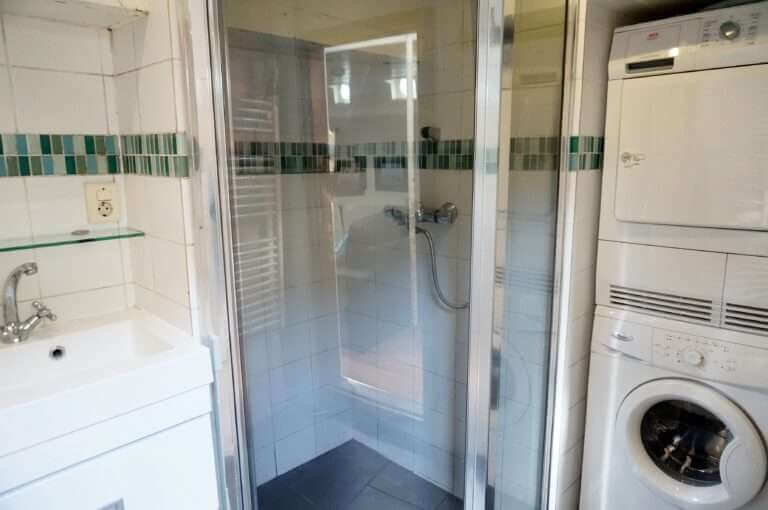 – Tevens te bereiken vanuit de woonkamer de badkamer met douche en wastafel en een wasmachine en wasdroger