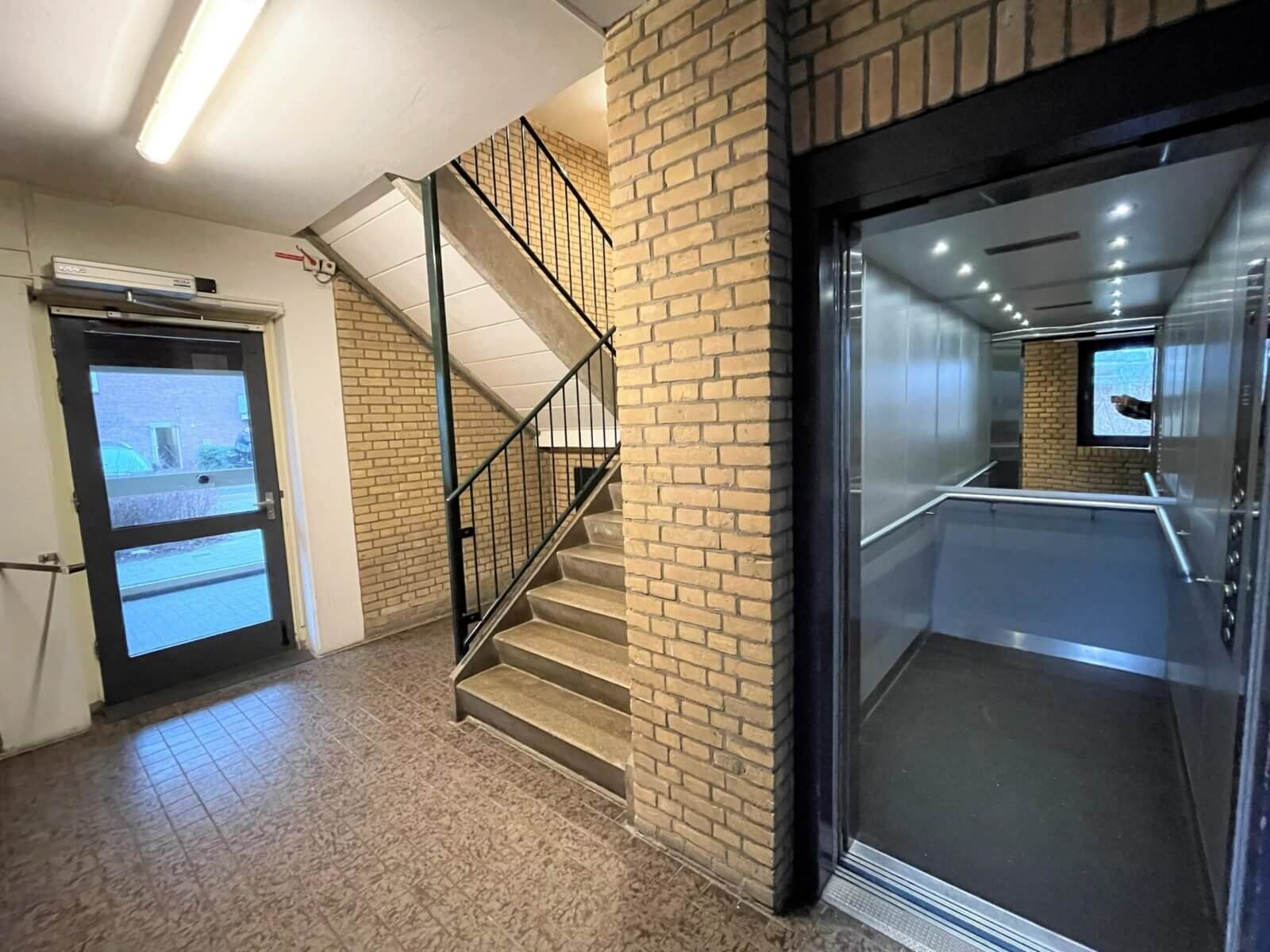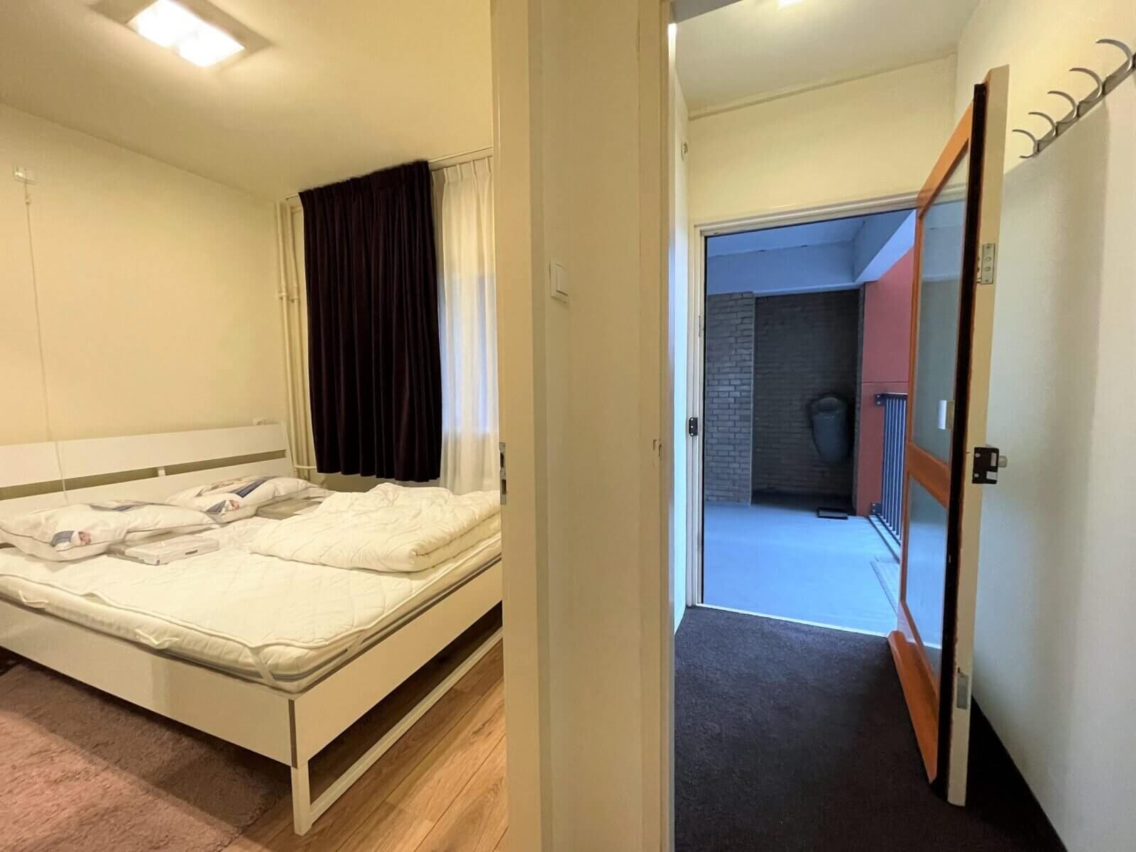 U komt binnen in de gezamenlijke entree van het complex. Met de trap of lift bereikt u de vierde etage waar het appartement zich bevindt. Je komt binnen in de gang die de ruimten met elkaar verbindt.