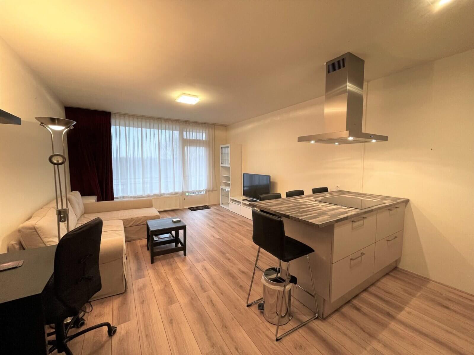 Dit fijne gemeubileerde – en in 2017 gerenoveerde – twee kamer (1 slaapkamer) appartement mét balkon! bevindt zich in een verzorgd complex te Amstelveen in de groene woonwijk Keizer Karelpark.