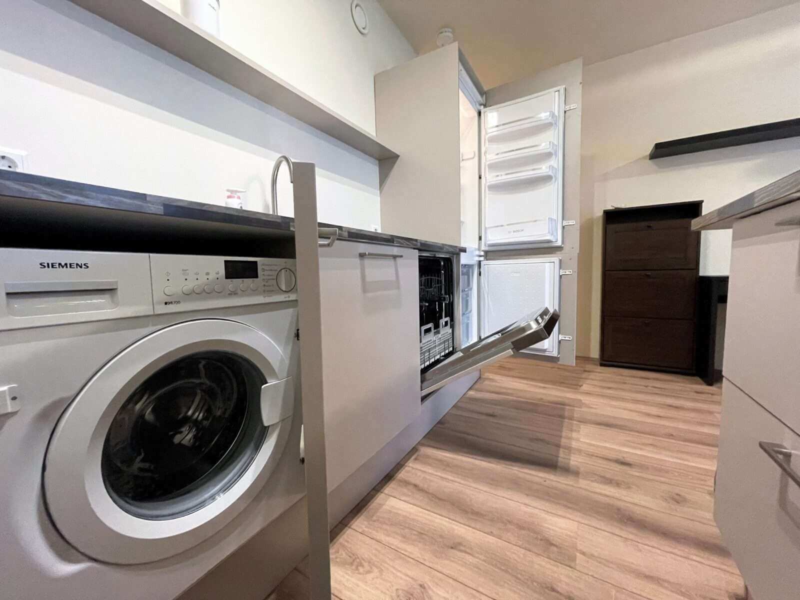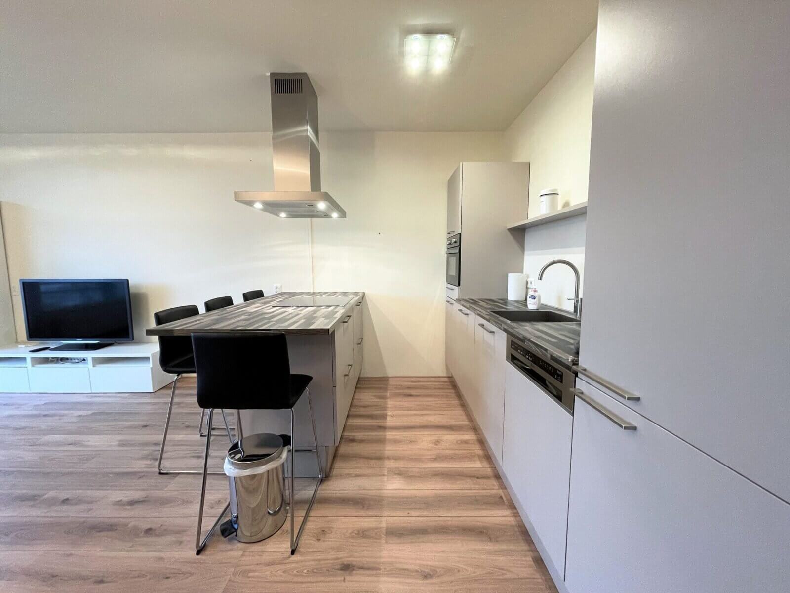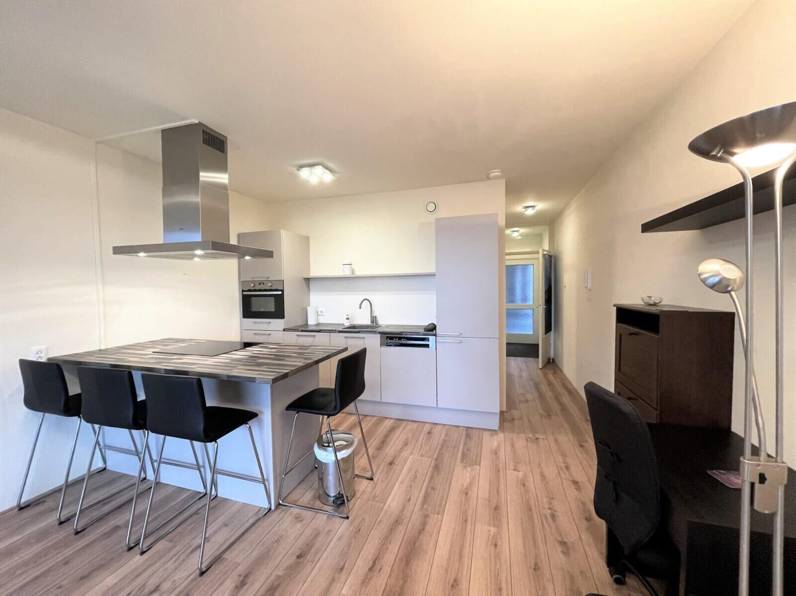 De woning beschikt over 1 slaapkamer, een woonkamer met open keuken, voorzien van diverse inbouwapparatuur (vaatwasser, oven, ingebouwd koel-vriescombinatie en wasmachine).