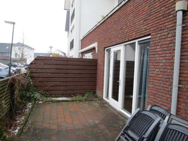 Volledig gemeubileerde benedenwoning met 2 slaapkamers, tuin op het zuiden en aparte berging.