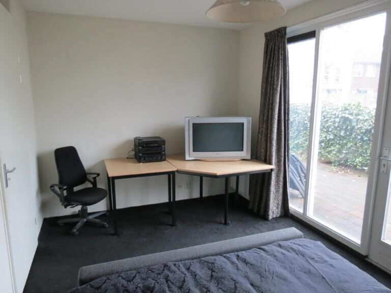 Volledig gemeubileerde benedenwoning met 2 slaapkamers, tuin op het zuiden en aparte berging.