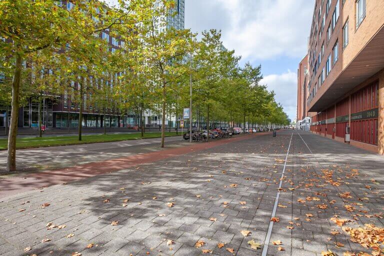 Vroeger een echte havenarbeidersplek, nu kunt u er prachtig wonen met een overweldigend uitzicht. De Kop van Zuid is een kindvriendelijke, levendige en vooral centraal gelegen wijk met alle voorzieningen binnen handbereik. Diverse winkels, grote supermarkten als Albert Heijn en de Jumbo en restaurants treft u op loop- en fietsafstand. Zo kunt u in de winkelstraat ‘Vuurplaat’ en in het Entrepotgebouw terecht voor de dagelijkse boodschappen en bent u binnen enkele minuten in het bruisende stadscentrum om te winkelen.