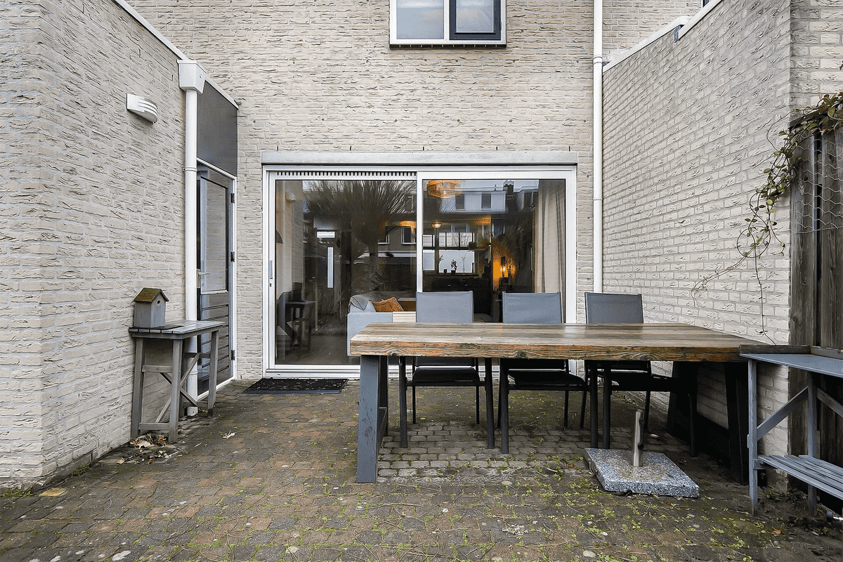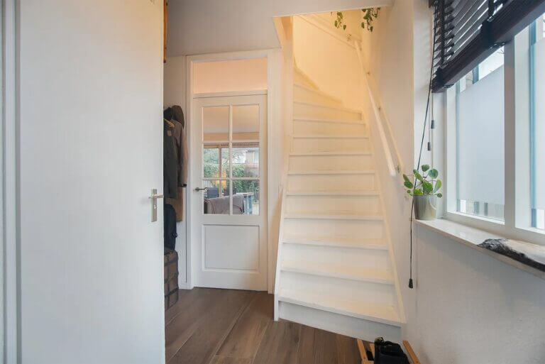 Bij Binnenkomst in de hal is de trapopgang naar de eerste verdieping, separaat toilet en toegang tot de woonkamer te vinden. Hieraan sluitend de keuken welke beschikt over alle gewenste inbouwapparatuur. Het is een prettige lichte ruimte met grote ramen naar de tuin. Achter in de tuin is een berging gelegen waar bijvoorbeeld fietsen gestald kunnen worden. Op de eerste verdieping zijn de slaapkamer, badkamer en werkkamer te vinden. De ruime badkamer beschikt over een douche, toilet en ligbad. Op de bovenste verdieping van de woning is nogmaals een slaapkamer te vinden met een mooie dakkapel. Deze slaapkamer kan ook goed dienen als werkkamer door de fijne lichtinval van de meerdere ramen.