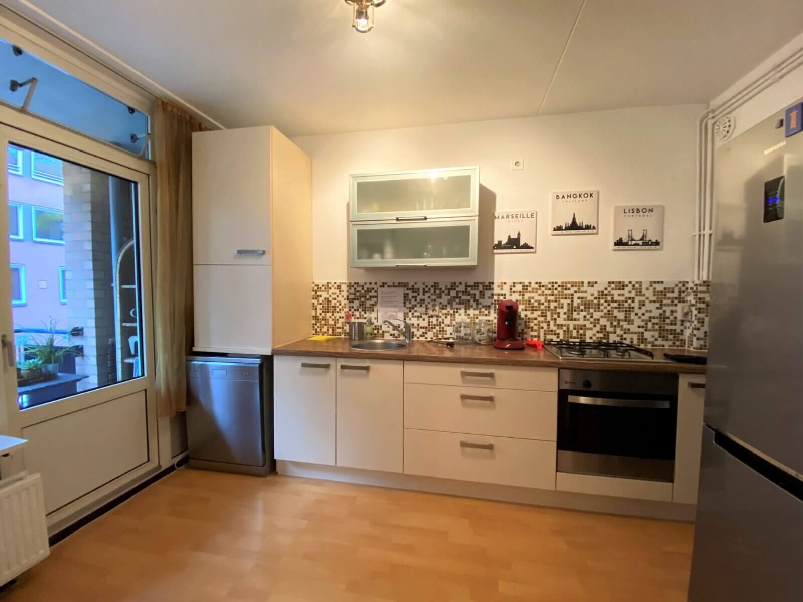 Het appartement is gelegen op een leuke locatie aan de Madurastraat, midden in de hippe Indische Buurt. Aan de Javastraat en op het Javaplein vind je vele winkeltjes, koffietentjes, nieuwe restaurantje, vers winkels en supermarkten voor de dagelijkse boodschappen. Andere geliefde plekken zoals Studio K, het Badhuis, Brouwerij ‘t IJ, Dappermarkt en het Flevopark liggen om de hoek. Ook prettig aan de Madurastraat is dat het relatief rustig is gezien de bevolkingsdichtheid.