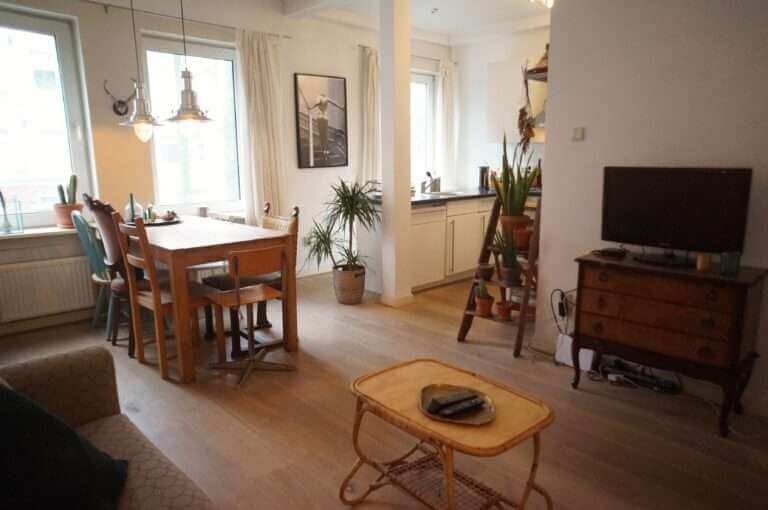 Op de eerste verdieping gelegen gemeubileerd 3 kamer (2 slaapkamer) appartement met balkon.