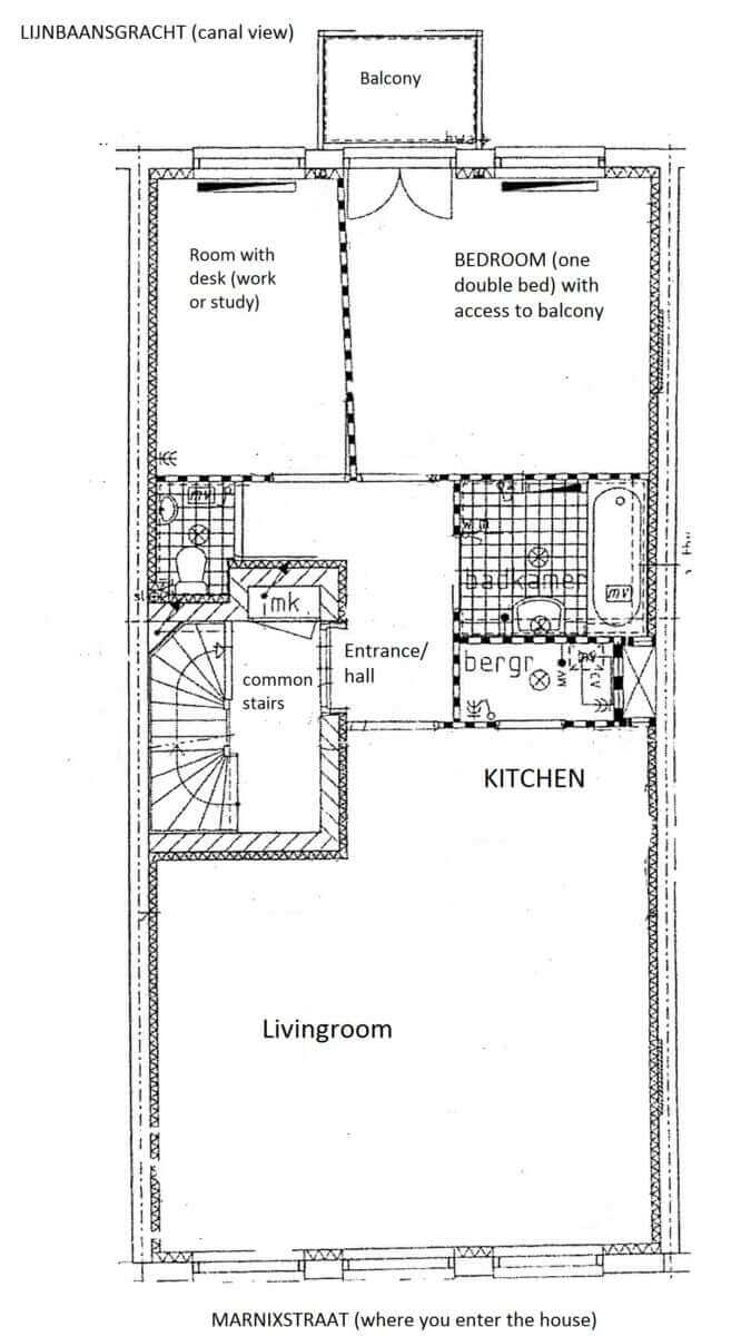 De woning is gelegen in de Jordaan en op de 2e verdieping van een pand uit 1890.