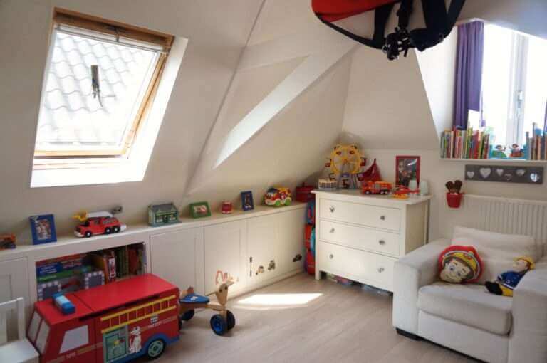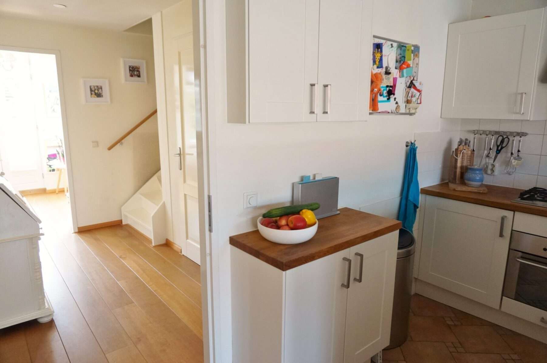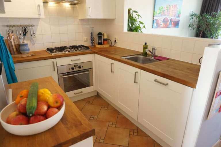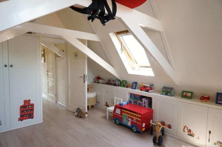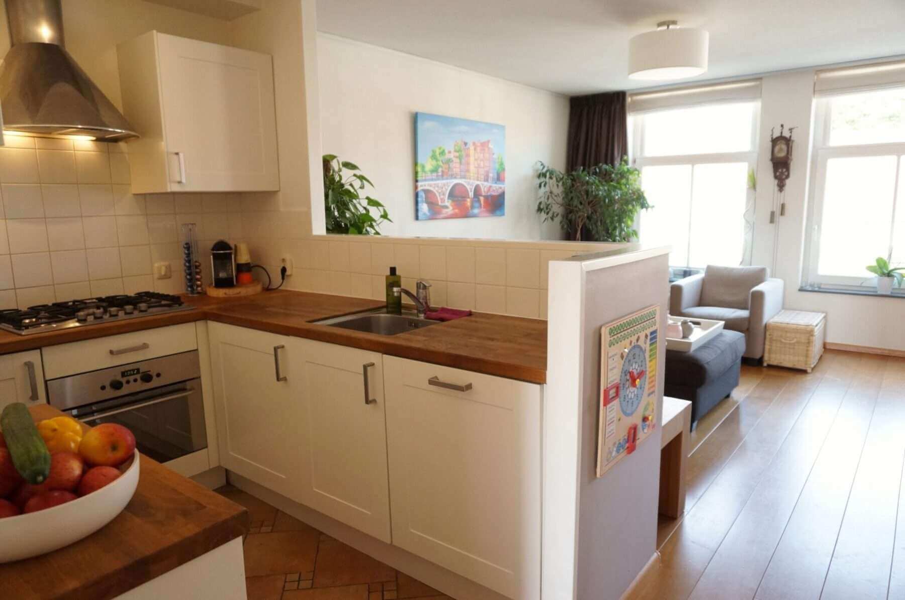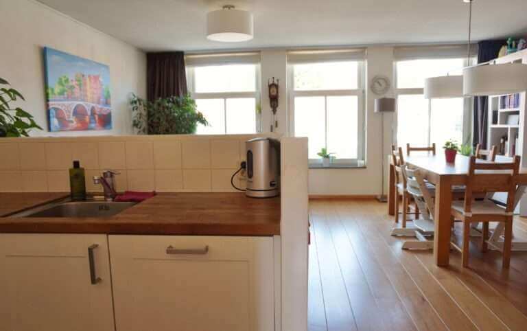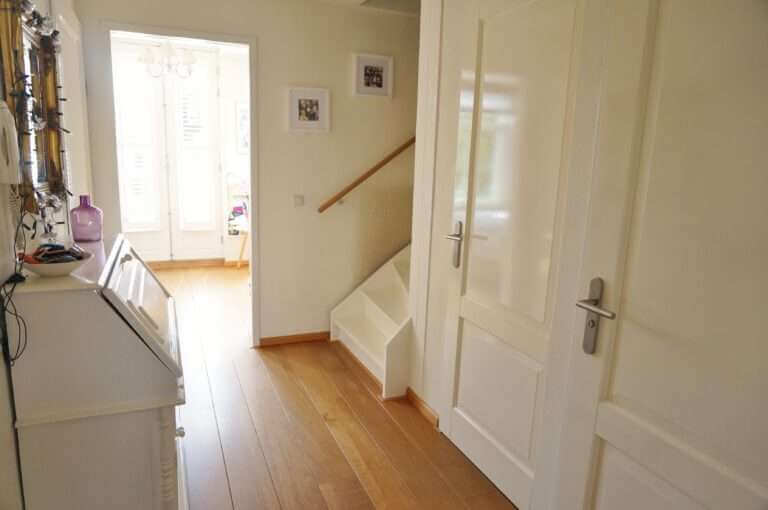 Op de woonverdieping ligt een mooie robijn houten vloer.