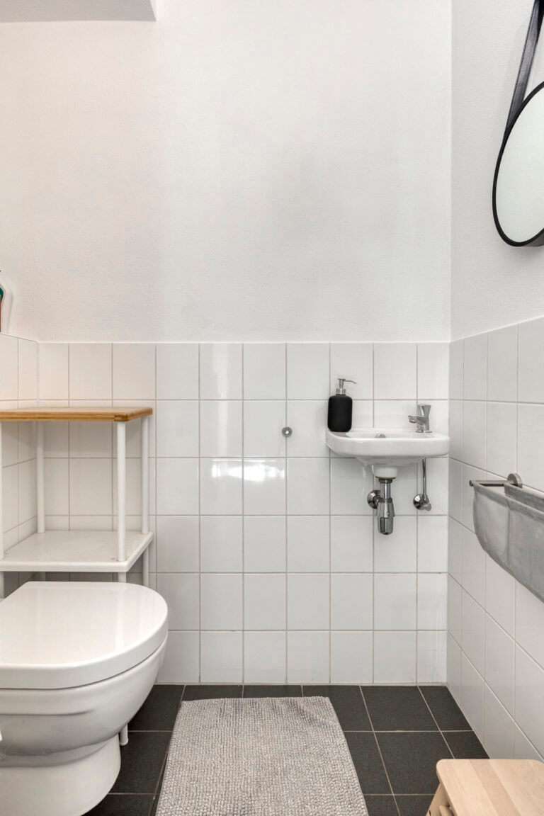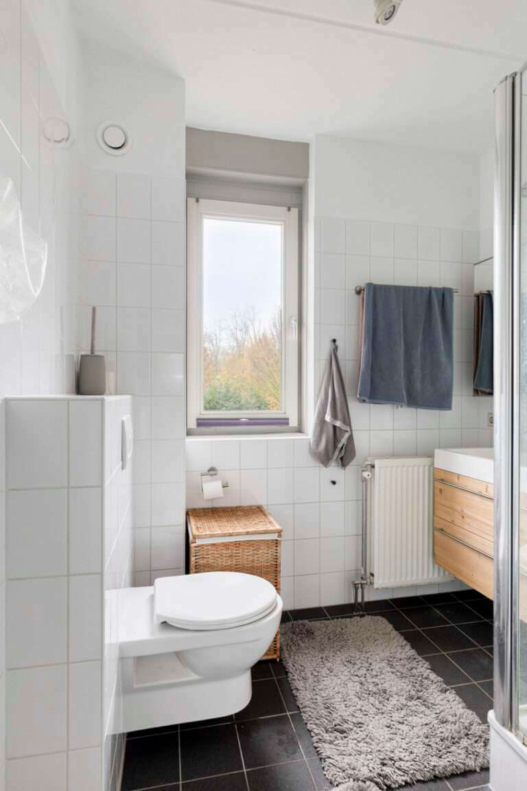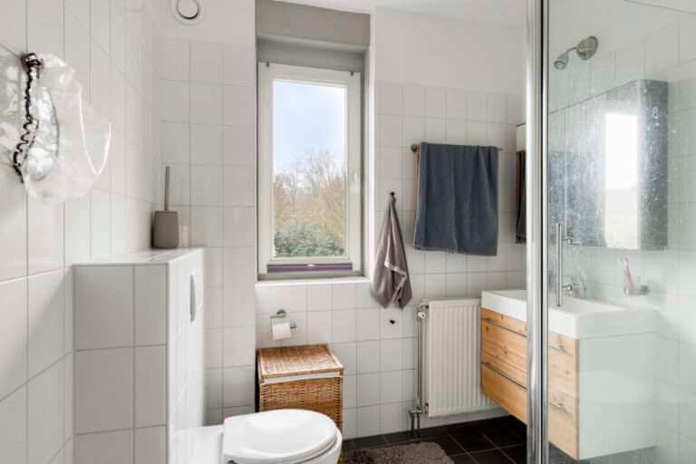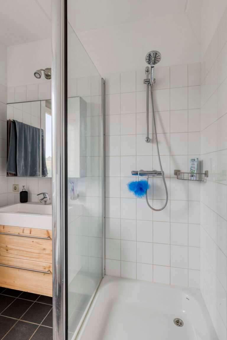 Op de eerste verdieping vind je drie ruime slaapkamers, allemaal voorzien van een laminaatvloer. De badkamer is compleet met een douche, wastafelmeubel en toilet.
