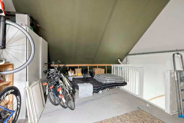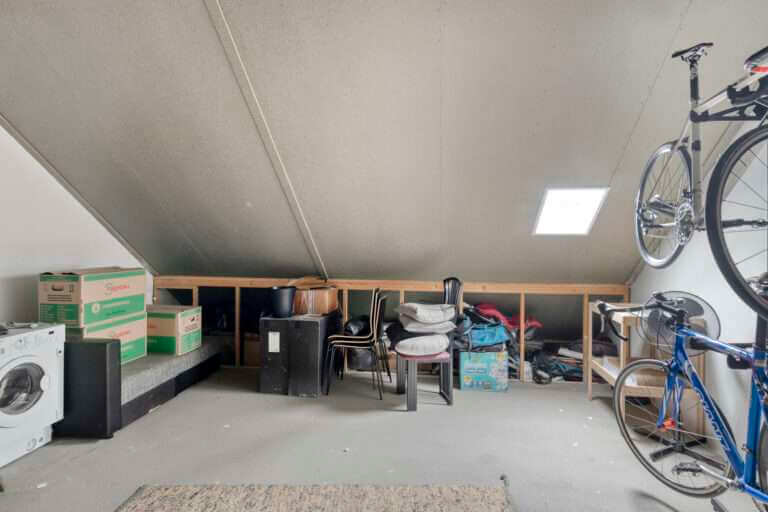 Via een vaste trap bereik je de tweede verdieping, waar je een grote zolderruimte met dakraam aantreft. Hier zijn de cv-ketel en staat de wasmachine te vinden. Deze ruimte biedt volop mogelijkheden als extra slaapkamer te of hobbyruimte.