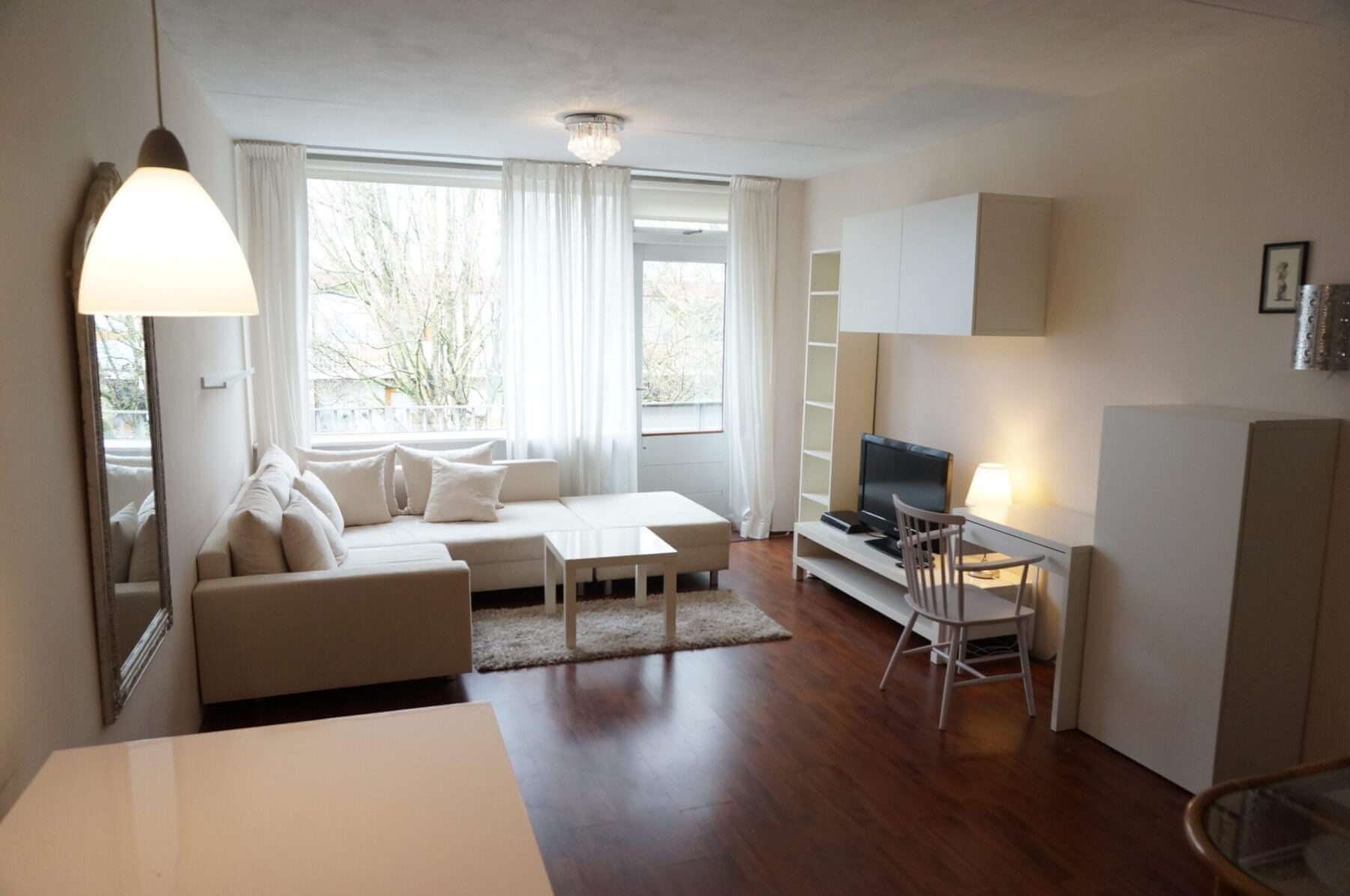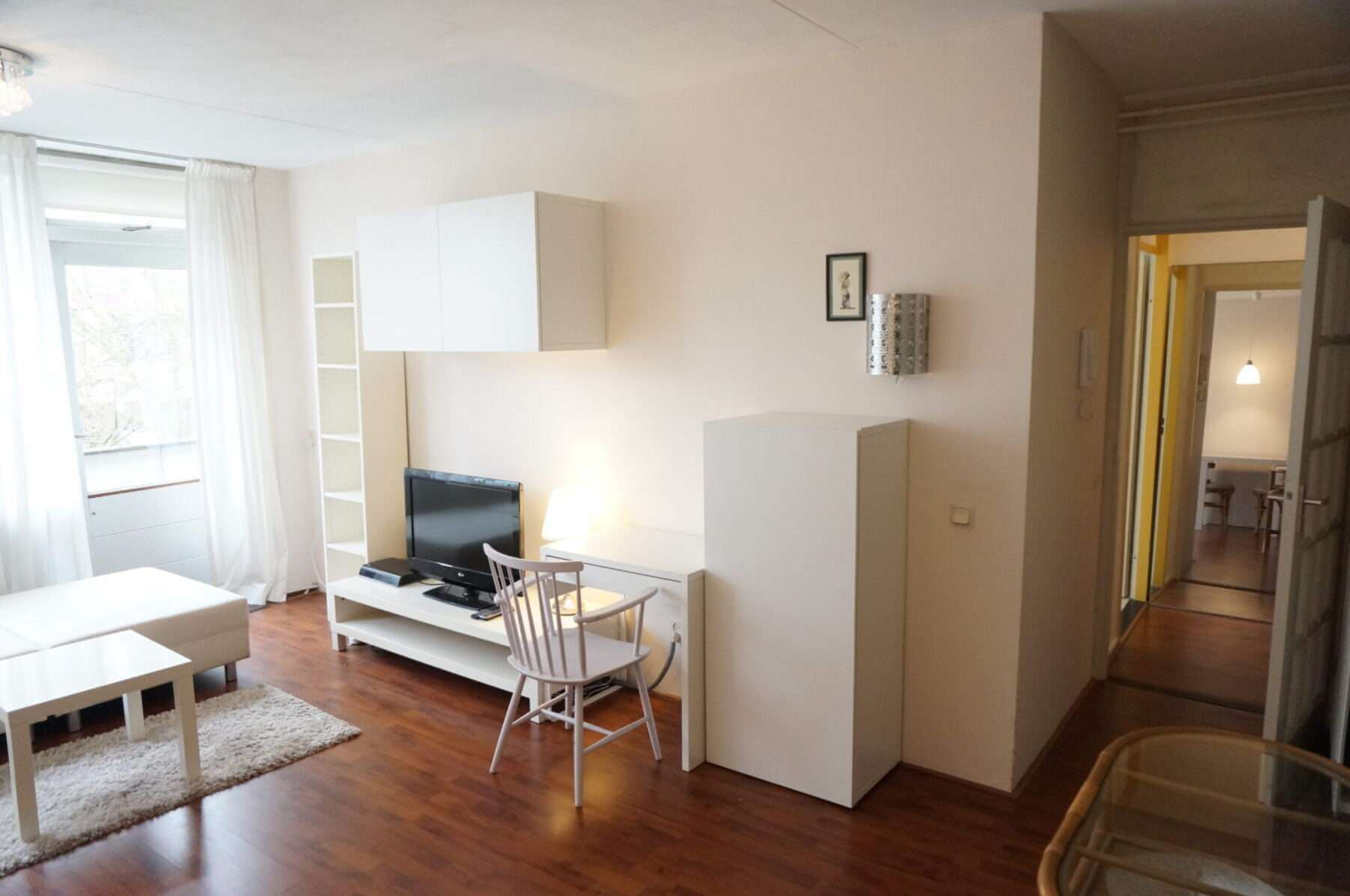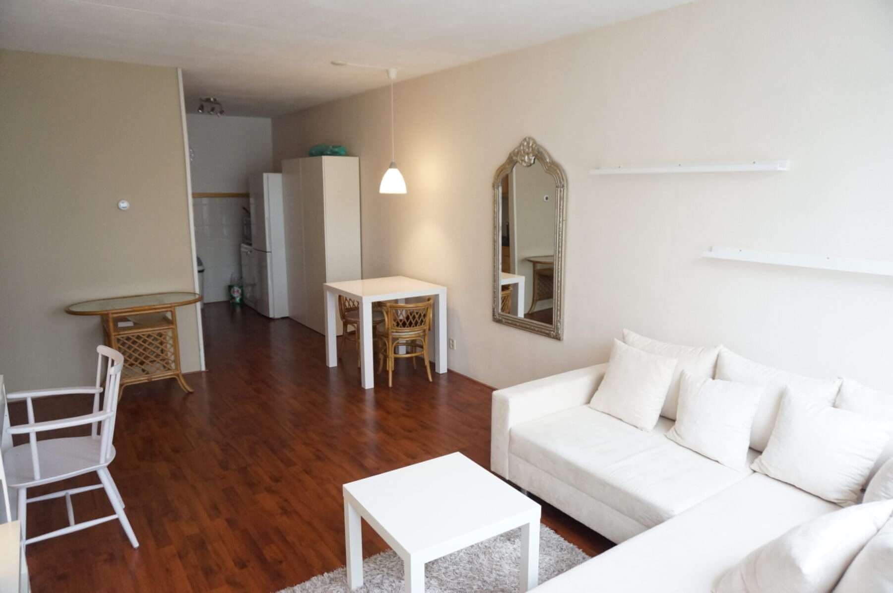 Gemeubileerde 2 kamer (1 slaapkamer) appartement met balkon en lift, gelegen op de 2e (bovenste) verdieping.