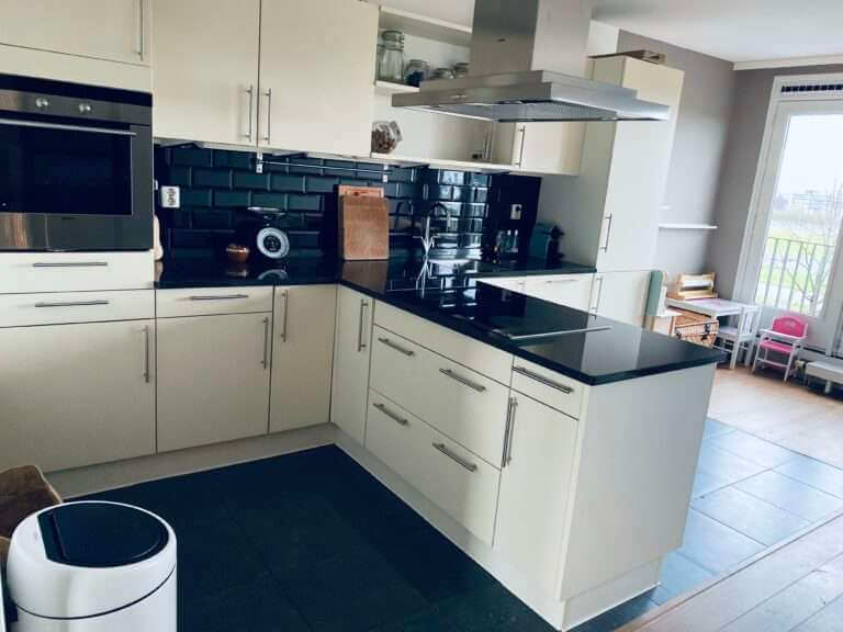Vanuit de fraaie, ruime woonkamer loop je door naar de grote open keuken met prachtig vrij uitzicht over het Amaliapark. De keuken is voorzien van luxe inbouwapparatuur, zoals een vaatwasser, extra grote oven en een koel-vries combinatie. Via een tweede halfopen gedeelte van de woonkamer, welke nu als studeerkamer wordt gebruikt, bereik je de toegang het grote balkon van 20m2, gelegen op het zuiden.
