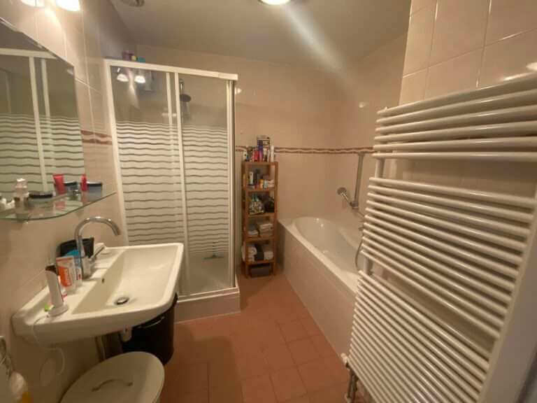 De badkamer beschikt over een ligbad, aparte douche, designradiator en een wastafel. De grote slaapkamer ligt aan de voorzijde (noord) van het complex en heeft 2 Franse balkons. Aan de achterzijde van het complex ligt de tweede slaapkamer.
