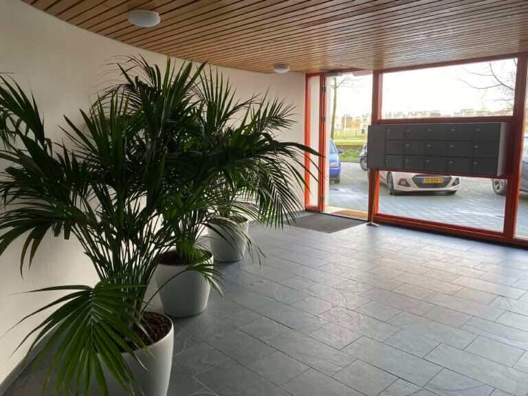 Op de begane grond de centrale entree met de postbussen en videofoon en toegang tot de lift, de berging en de achteruitgang naar de parkeerplaats.