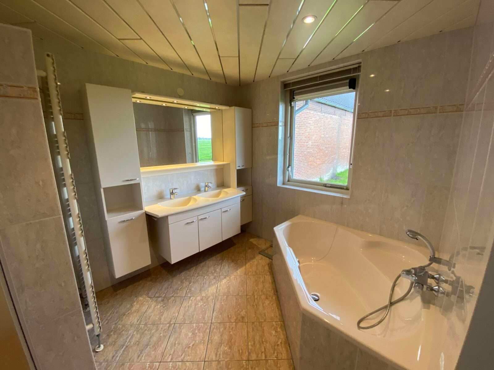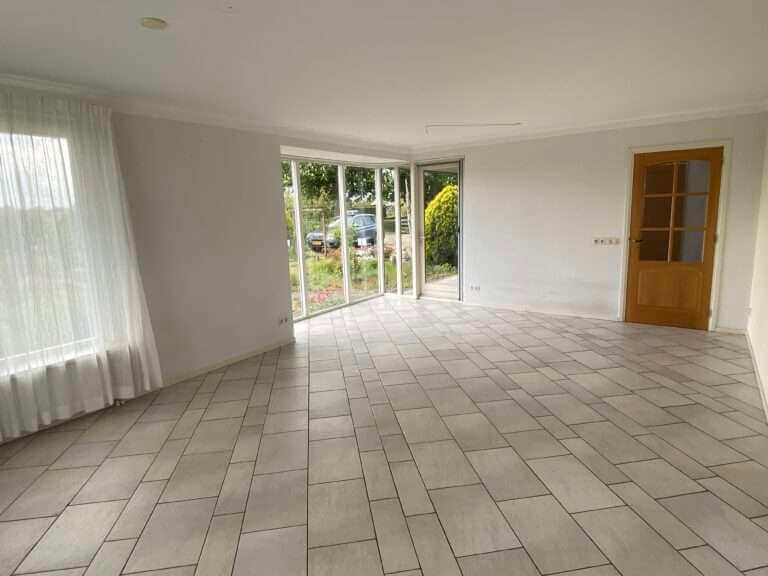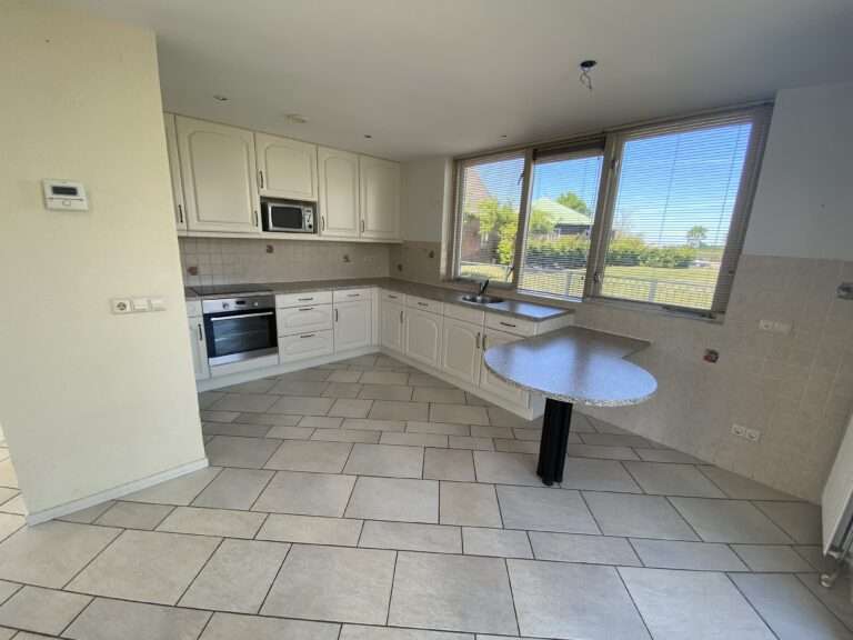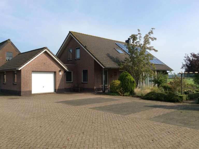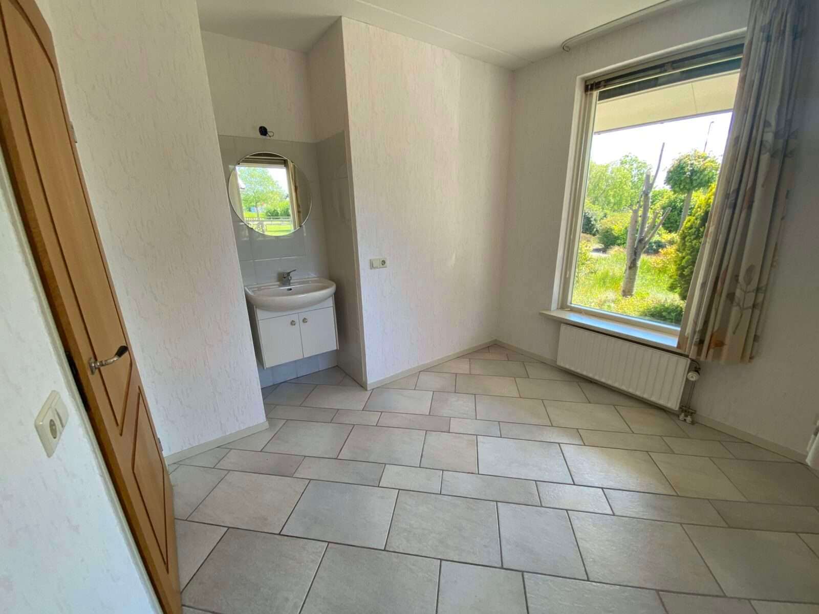 Entree, ruime hal overlopend in gang met toegang tot trap naar 1e etage, toilet, meterkast, 3 slaapkamers waaronder de master bedroom met eigen badkamer en 2 kleinere slaap- of werkkamers en de bijkeuken. Vanuit de bijkeuken, waar de wasmachine en droger staan, toegang tot de garage met kanteldeur en gewone loopdeur naar de achtertuin. De woonkamer met gashaard en erker bied vrij uitzicht over de fraai aangelegde voortuin en het weidse groen rondom de woning. Vanuit de woonkamer toegang tot de grote, lichte halfopen woonkeuken met geïntegreerde eettafel. De keuken is vernieuwd in 2020 en voorzien van diverse (nieuwe) apparatuur zoals een 4 pits elektrisch kookfornuis, oven, koelvriescombinatie, magnetron en vaatwasser. De keuken biedt tevens een prachtig uitzicht over de landerijen. Door middel van een schuifdeur toegang tot een grote serre aan de zij- en achterzijde van de woning, overgaande in het terras aan de achterkant van de woning. Zowel vanuit de serre als het achterterras heeft u prachtig weids uitzicht over de landerijen en fauna. De gehele begane grond m.u.v. de master bedroom is voorzien van een plavuizen vloer met vloerverwarming. De master bedroom beschikt over een laminaat vloer en heeft een eigen, masterbadkamer met een aparte douche, ligbad, dubbele wastafel en toilet.