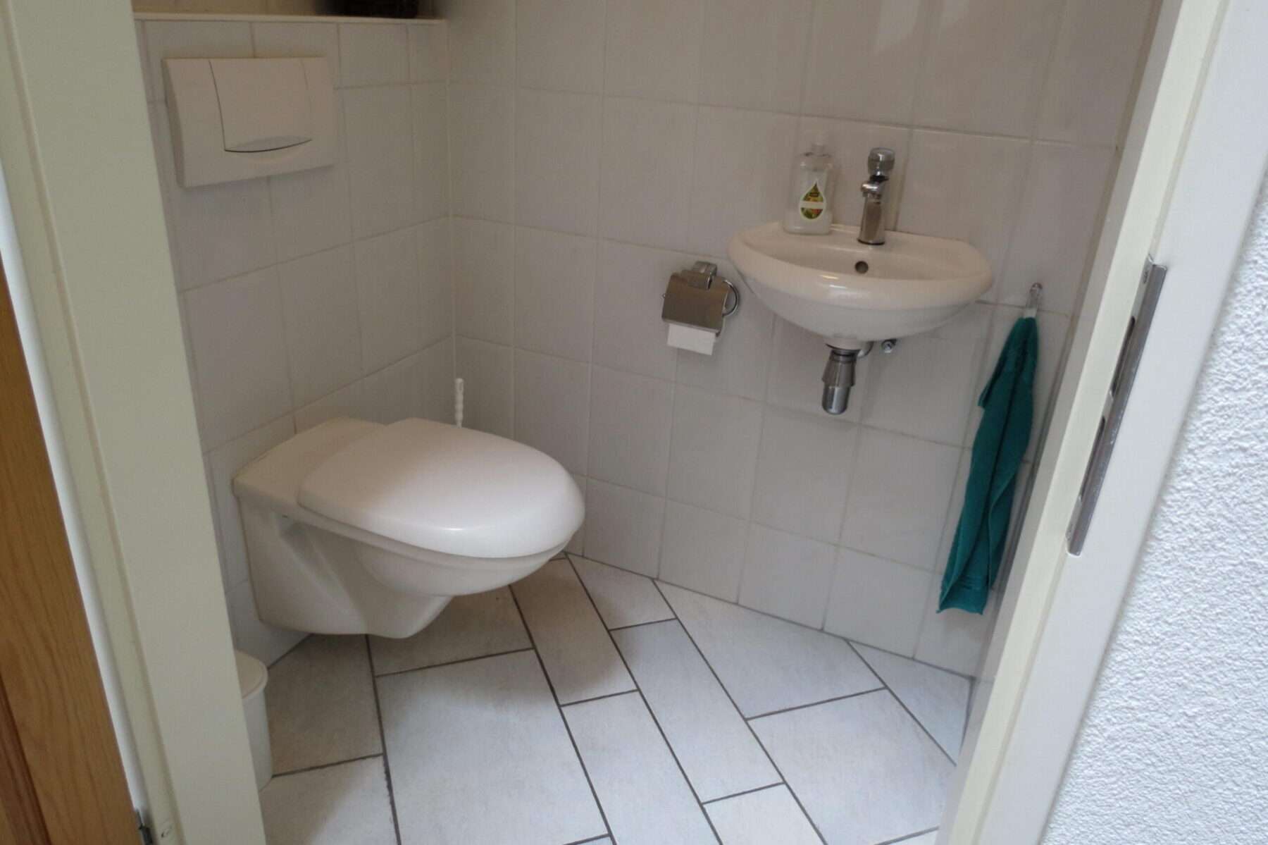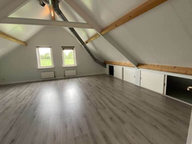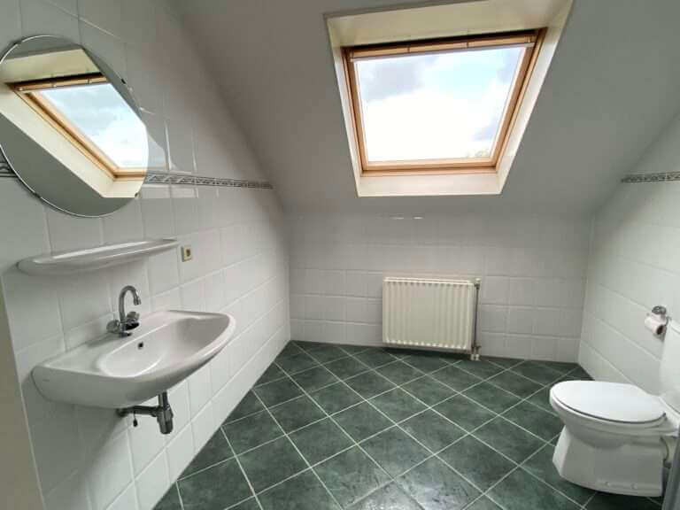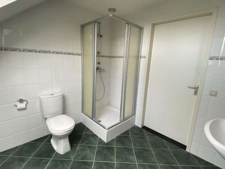 Overloop naar 2 grote slaap/hobbykamers en de tweede badkamer welke is voorzien van douche, toilet en wastafel. De gehele etage is ook voorzien van laminaat.