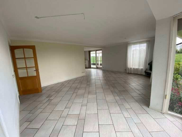Gestoffeerde, vrijstaande villa met 5 slaapkamers, grote aangebouwde serre en garage met schitterend uitzicht over de weilanden.