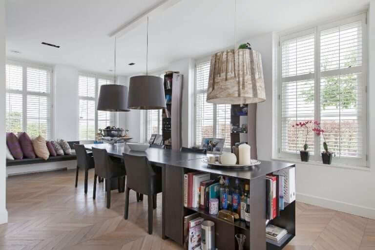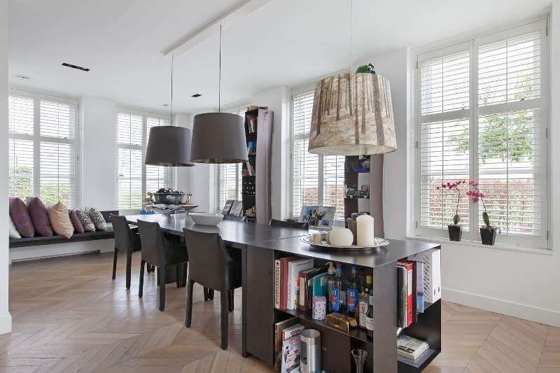 De woonkamer is verdeeld in 2 ruimtes met een gedeelde woon en eetkamer functie en in het midden de keuken met een schitterend uitzicht op de tuin.