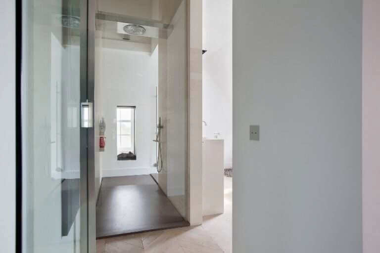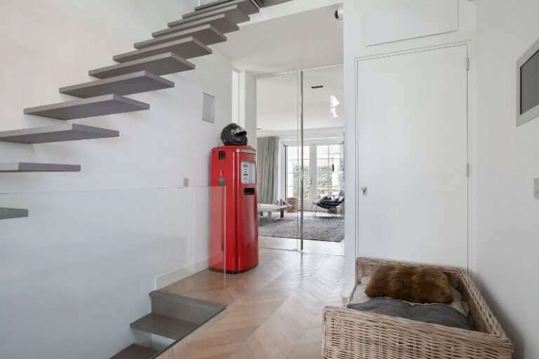 Mooie, vorstelijke hal ruim en licht. Toilet in stijl. De vloer boven de hal heeft een glazen loopbrug, het geeft een zee van licht en ruimtelijk gezien is het weids.
