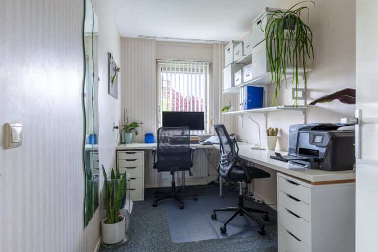 Er is een vierde slaapkamer aanwezig en een aparte kamer waar de wasmachine en de droger (aansluitingen) aanwezig zijn